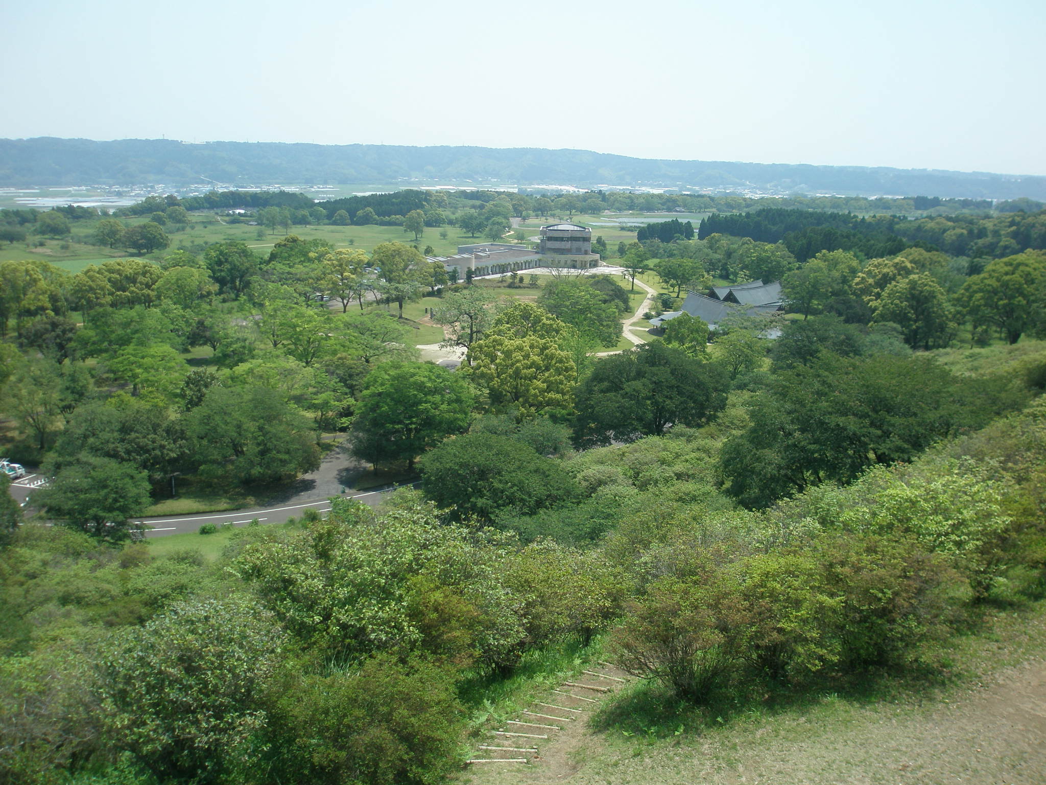 36 高取山(宮崎県西都市大字三宅付近) 西都原古墳群の横に高取山を見つけて驚きました。神武東征隊は西都原が出発地だったのです。考古博物館から見ています。つつじの公園になっています。下段は山頂から見た風景です。