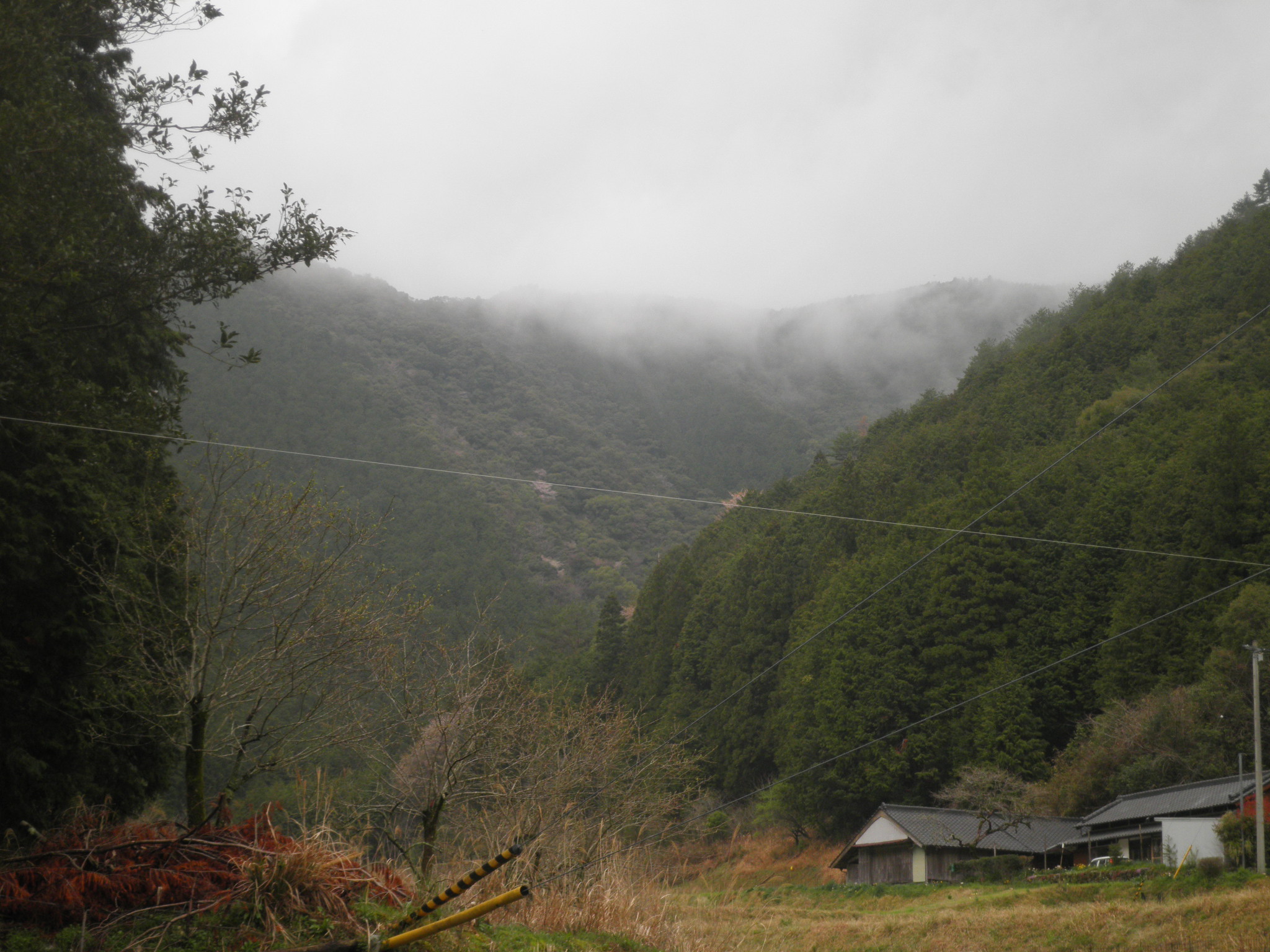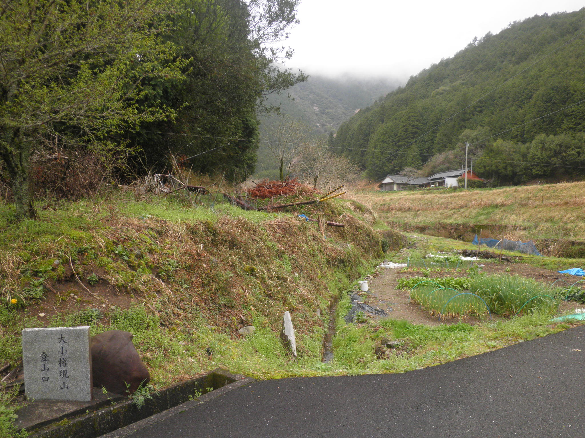 22 大小権現山 高知県高岡郡中土佐町大野見 付近 山間を進んだ突き当たりに登山道入り口がありました。雨が上がり霧が薄くなるのを待って撮影しました。田んぼの水を得る山と思われます。大小とつくのはまた特別な意味があるのでしょう。