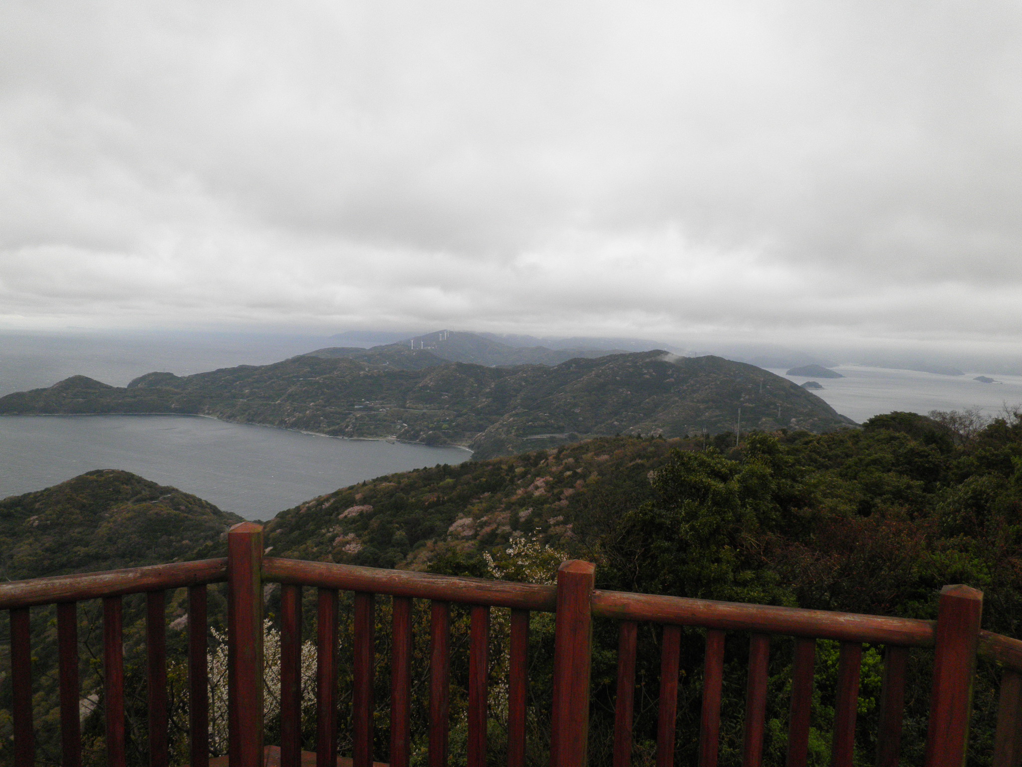 24 権現山 愛媛県西宇和郡伊方町三机 付近 佐多岬半島の中ほどにあります。下段は山頂付近の展望台から見た半島の山波です。半島の両側が見え、古代航路の目印になったと思われます。