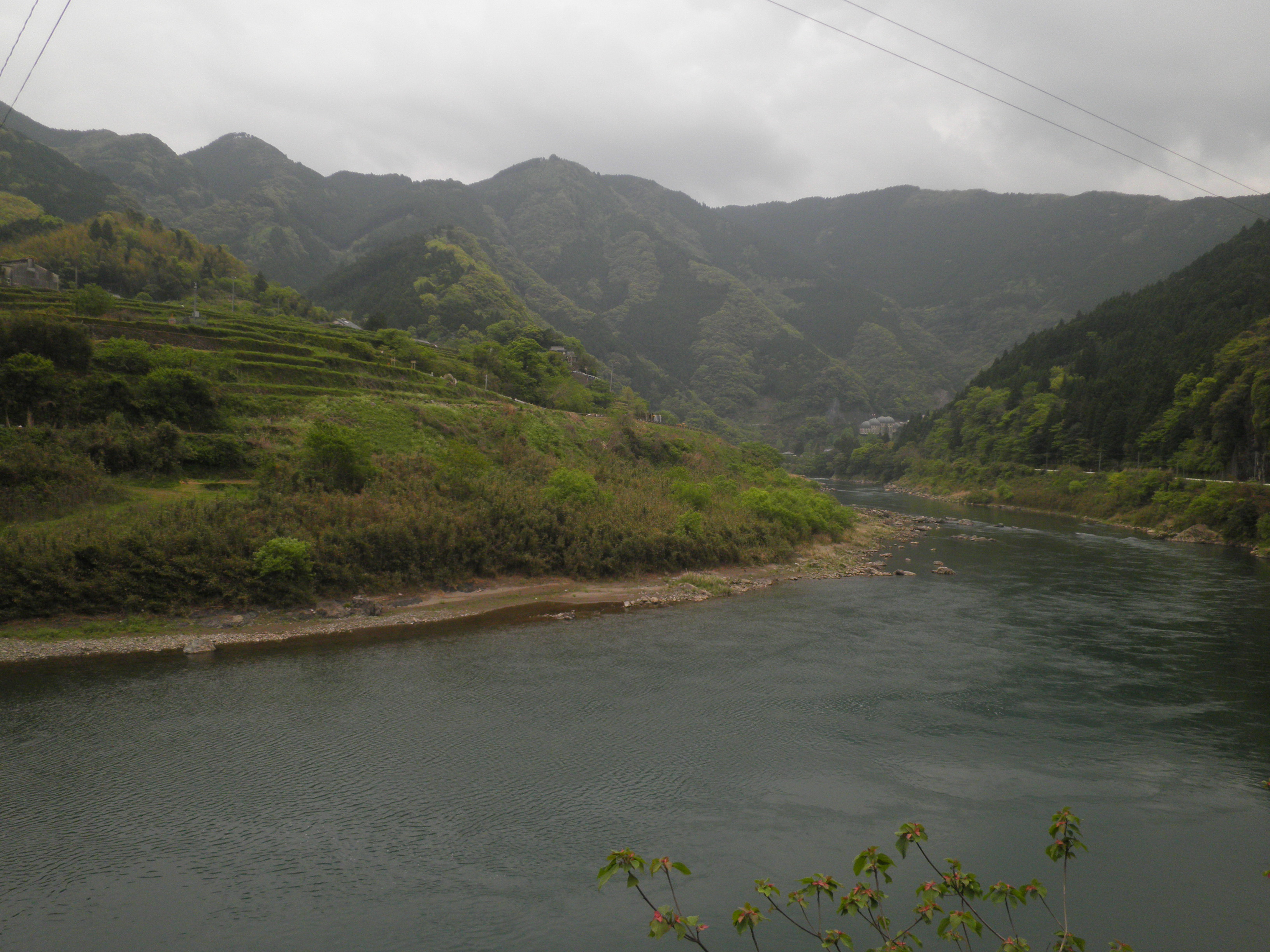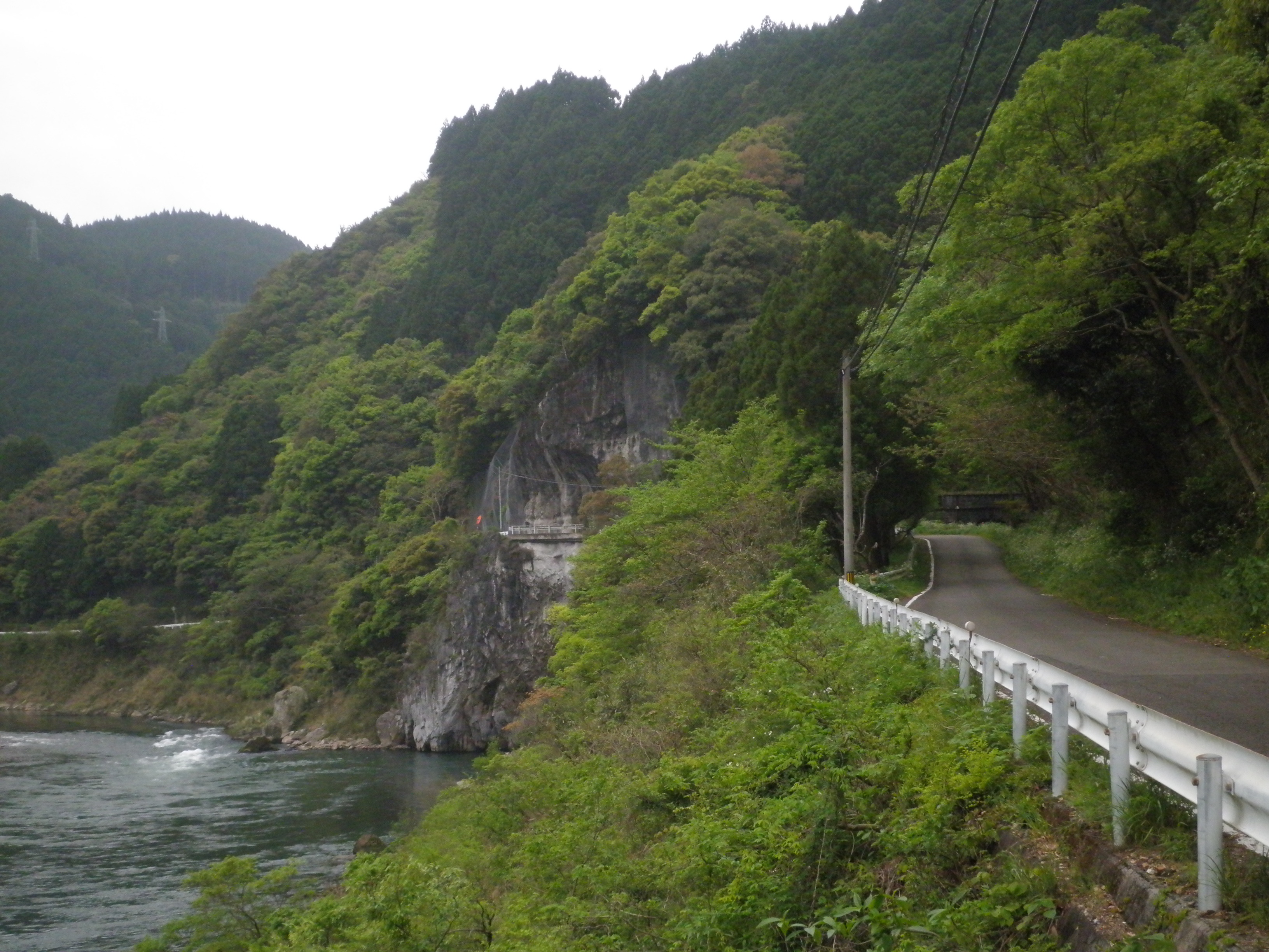 4 権現山 熊本県球磨郡球磨村大瀬 付近 上段画像の中央の山です。山頂にポッチが見えます。下段画像のこの岩場を越すのが大変だったのだろう。ここから見える山に権現と名付けた。