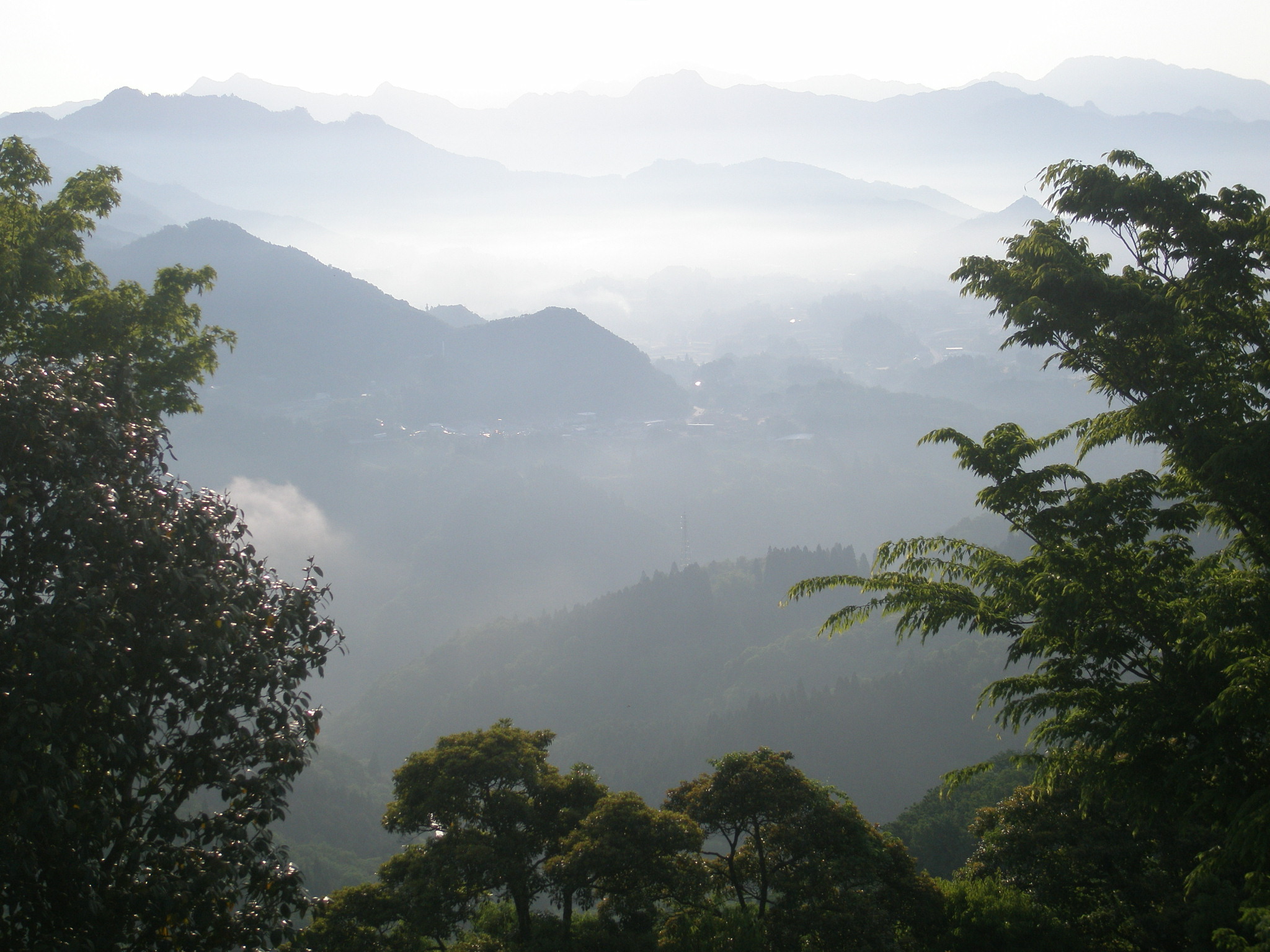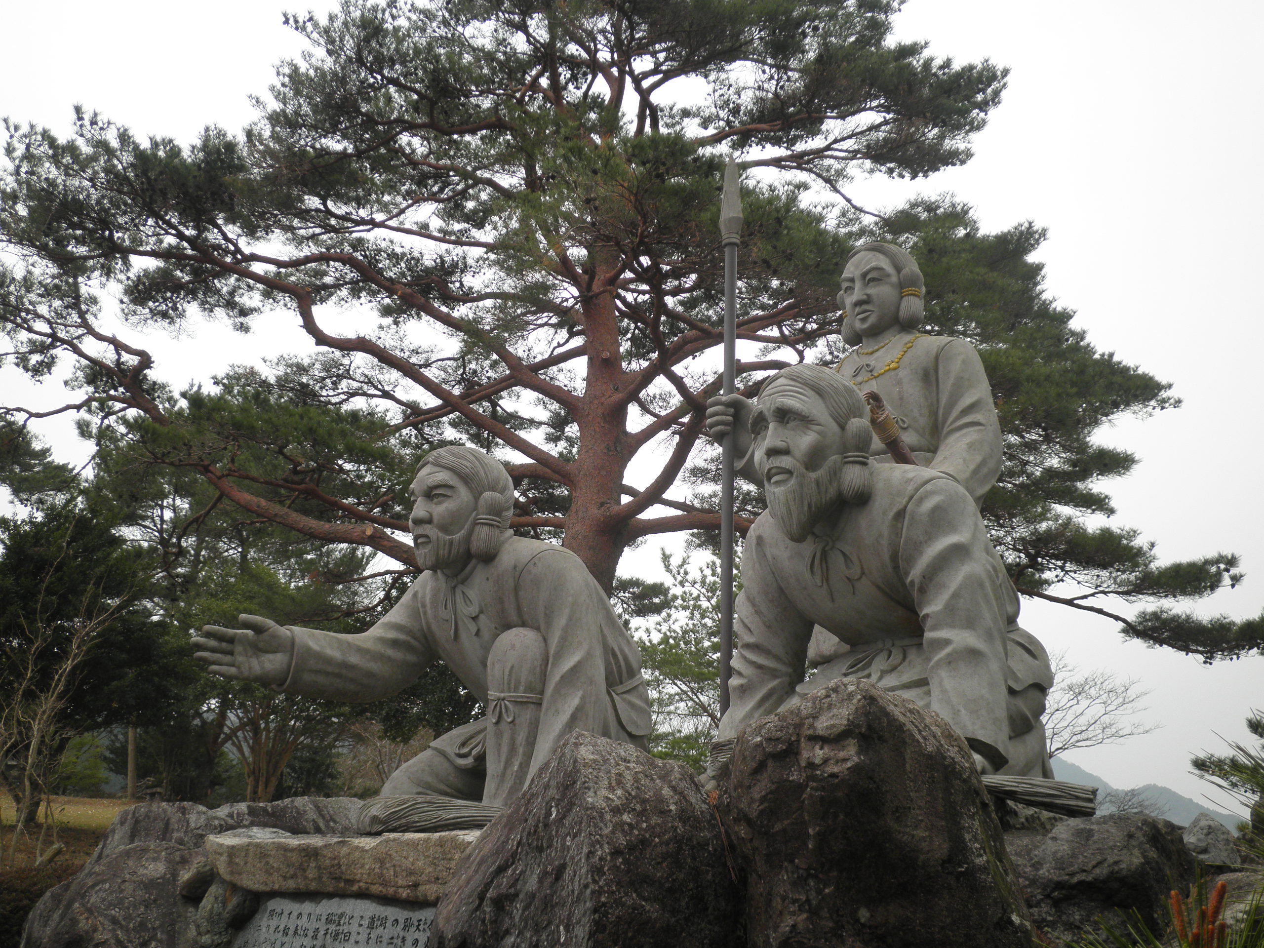 1 国見が丘(宮崎県西臼杵郡高千穂町押方 付近 ) 国見が丘から見た高千穂の風景です。下段は丘の上にある国見する邇邇藝命と伴です。