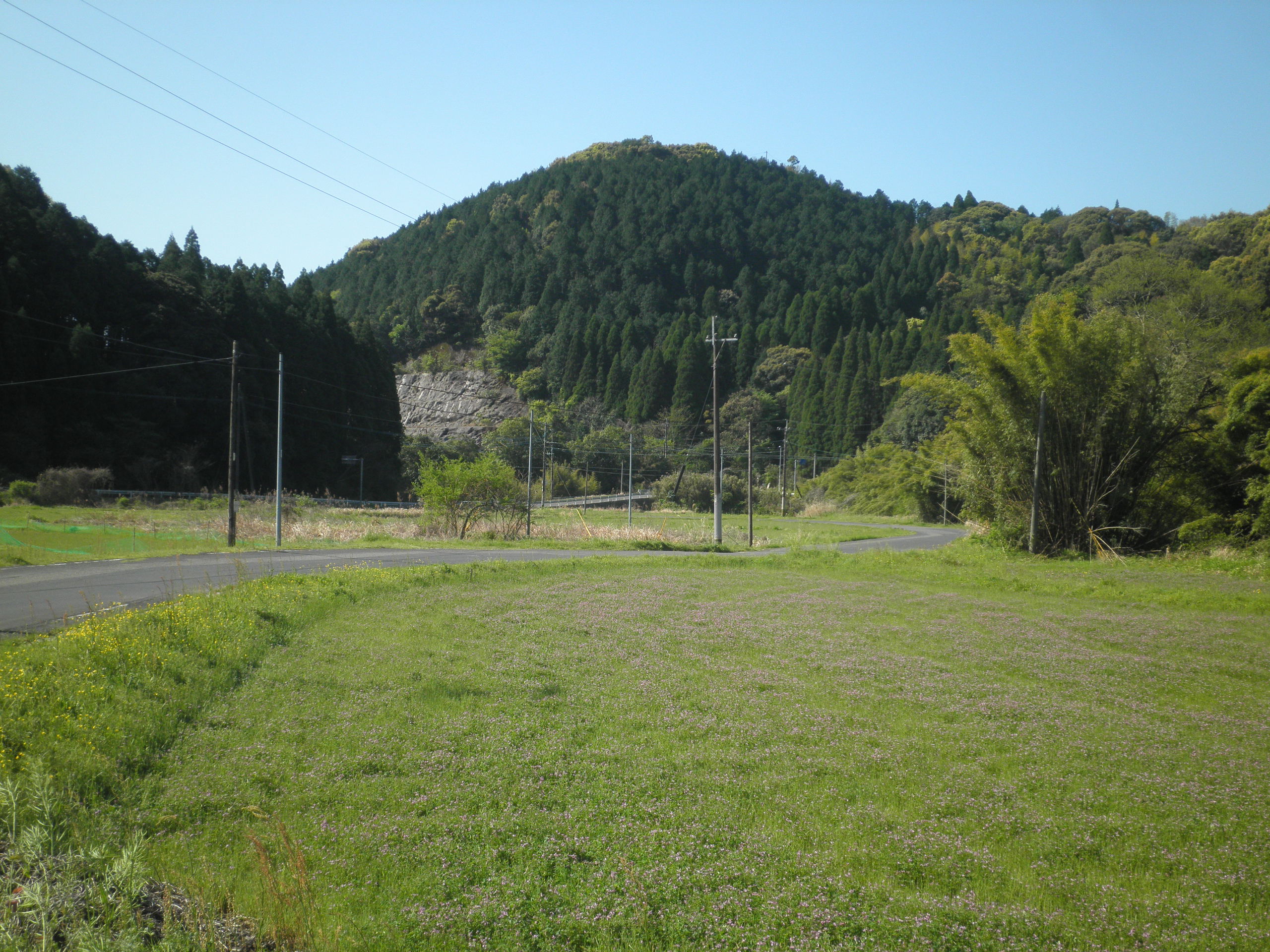 19 餅ケ岡(鹿児島県鹿児島市郡山岳町 付近) この時代すでに餅があったのでしょう。下段画像のように、山頂部は平で、これから向う甲突川流域を見渡すことができます。