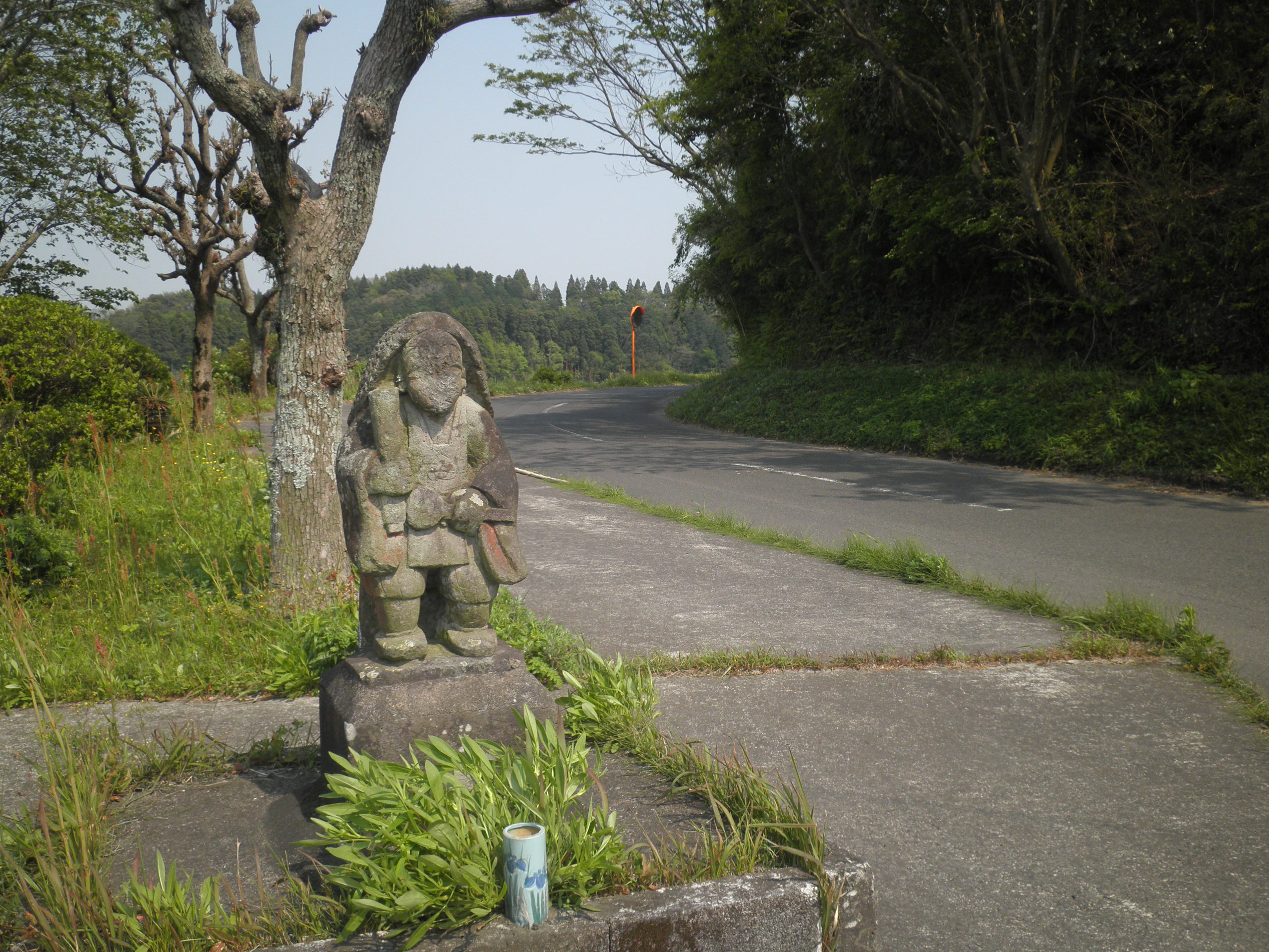 29 陣ノ岡(鹿児島県鹿屋市 付近) 陣はここでサポートしたことを表しています。下段は鹿児島地方でよく見る、路傍の田の神の石像です。