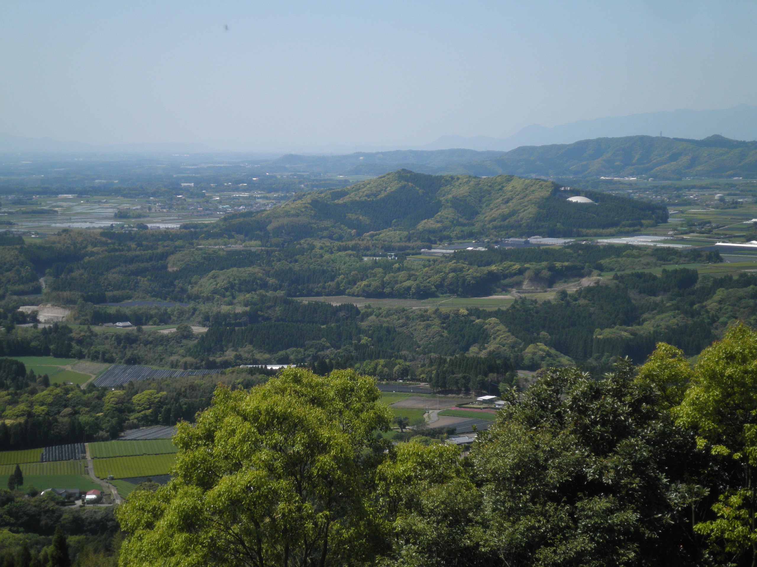 33 岳野丘(鹿児島県志布志市有明町 付近) 志布志市役所から岳野丘を見ています。山頂は見晴らしが素晴らしく、肝属平野を一望できます。ドームがある宇都丘が良く見えます。その向こうは草野丘です。