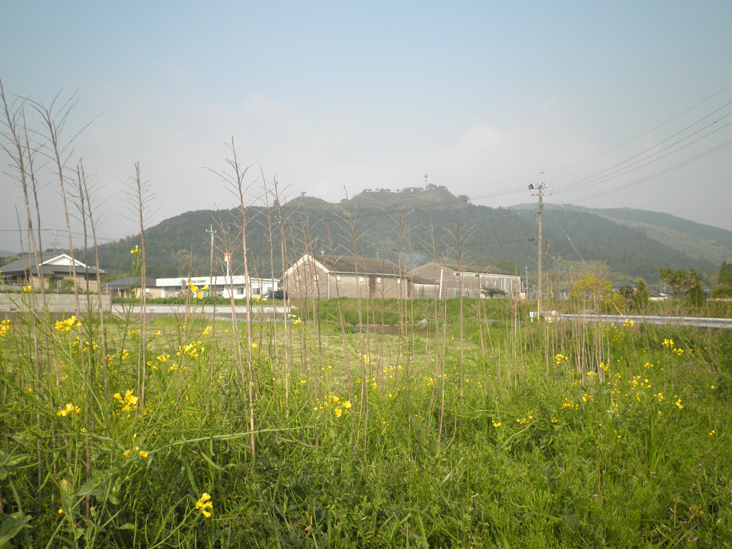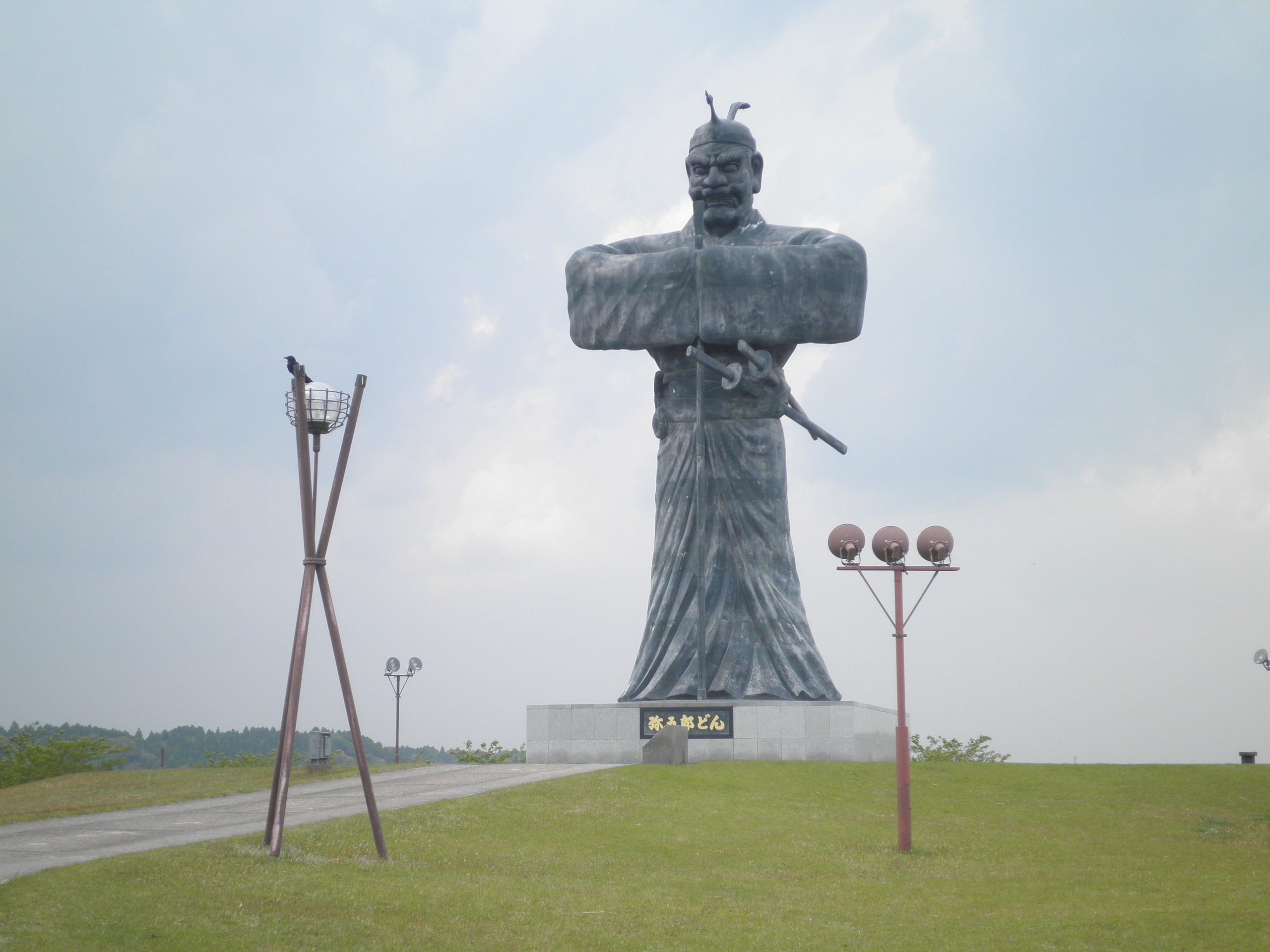 34 登見ノ丘(鹿児島県鹿屋市輝北町市成 付近) 勿体岡から登見ノ丘を結んだ先は、やはり牟礼ケ岡に延びています。下段は曽於市岩川の弥五郎どんで武内宿禰の大きな銅像です。