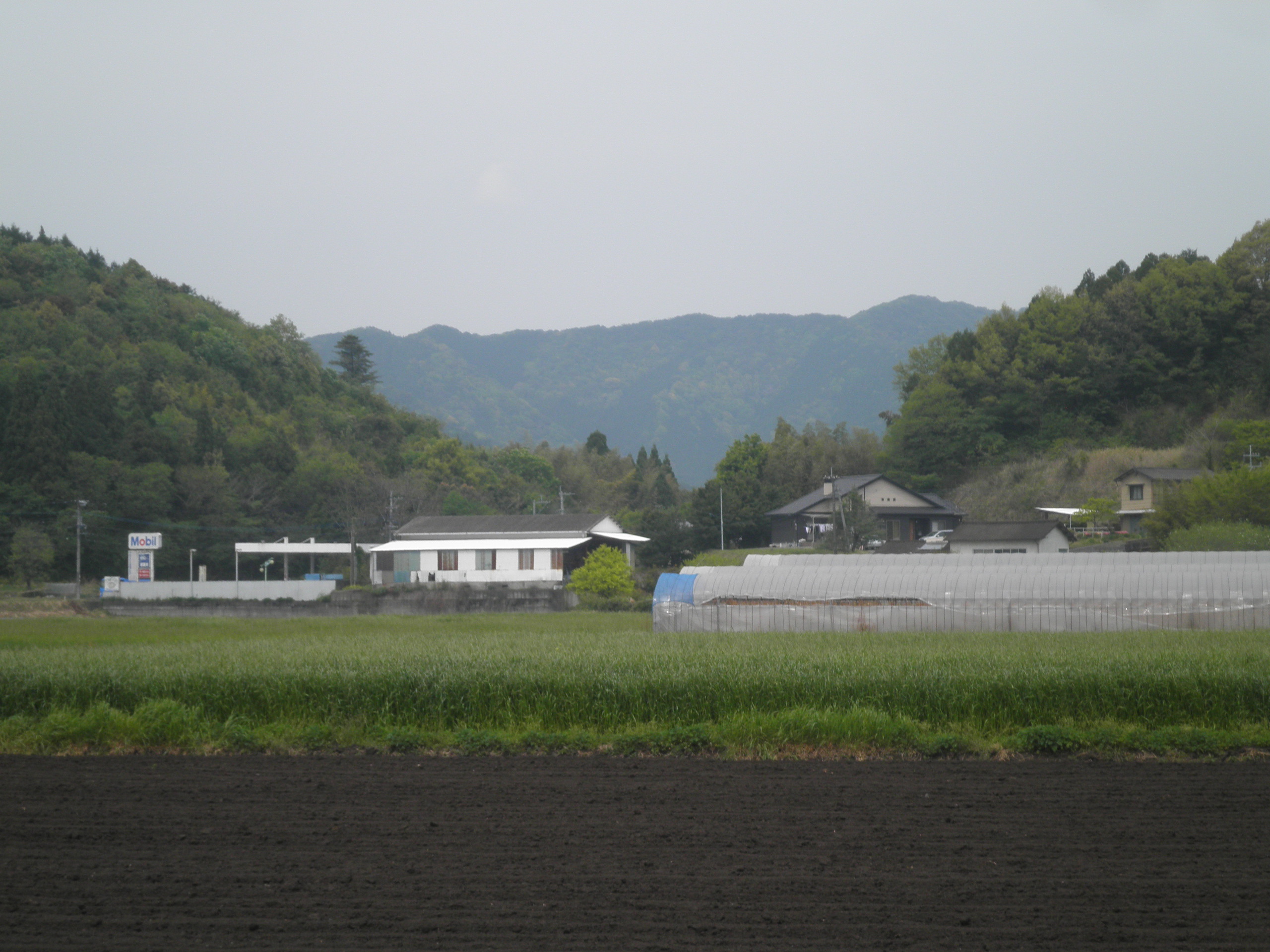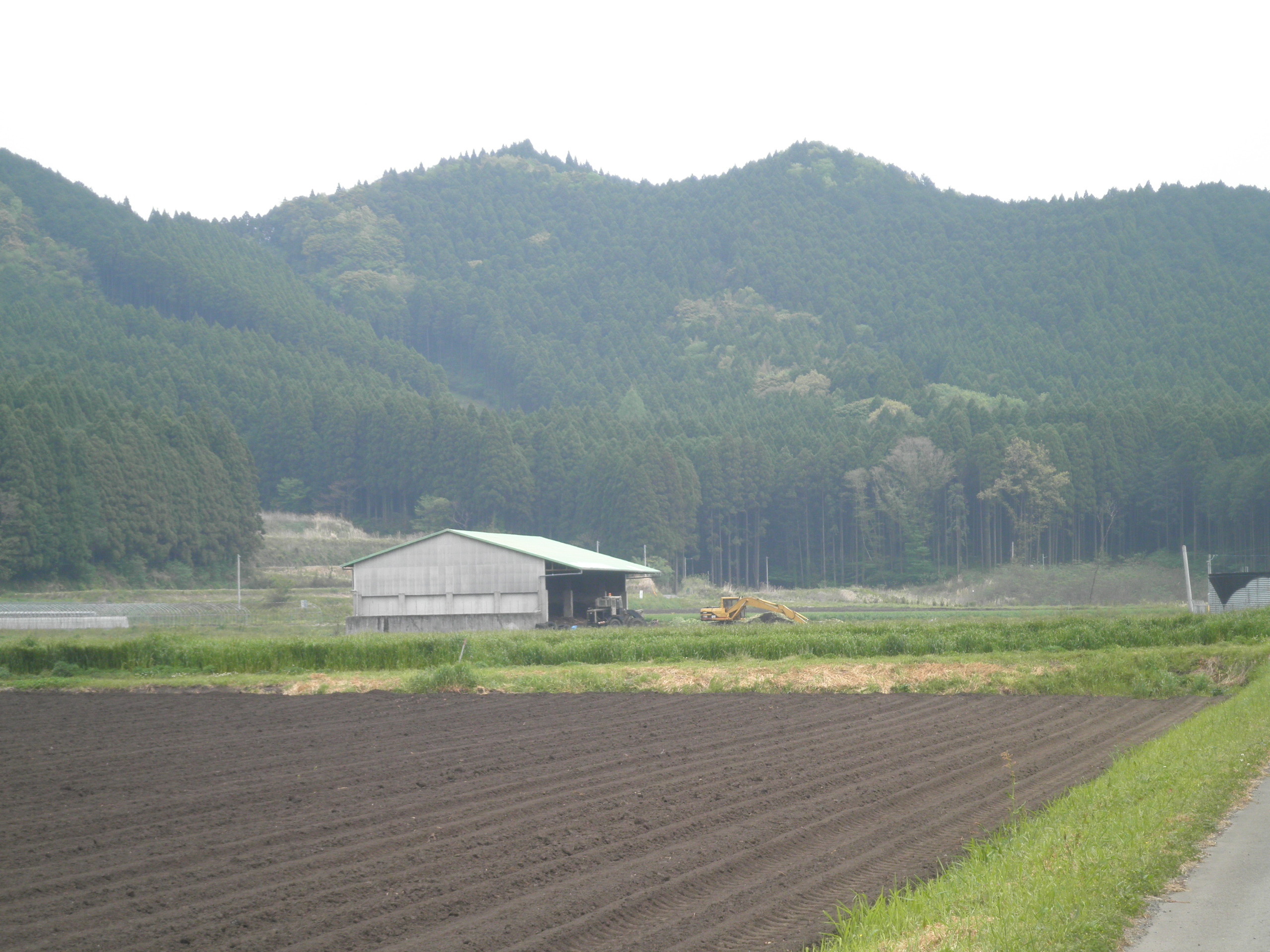 41 霞ケ丘(宮崎県小林市野尻町三ケ野山 付近) 上の画像は霞ケ丘です。下段の画像の左が城ノ岡、右が霞ケ丘です。この山間を通ったのでしょう。遠くに土然ケ丘が見えます。