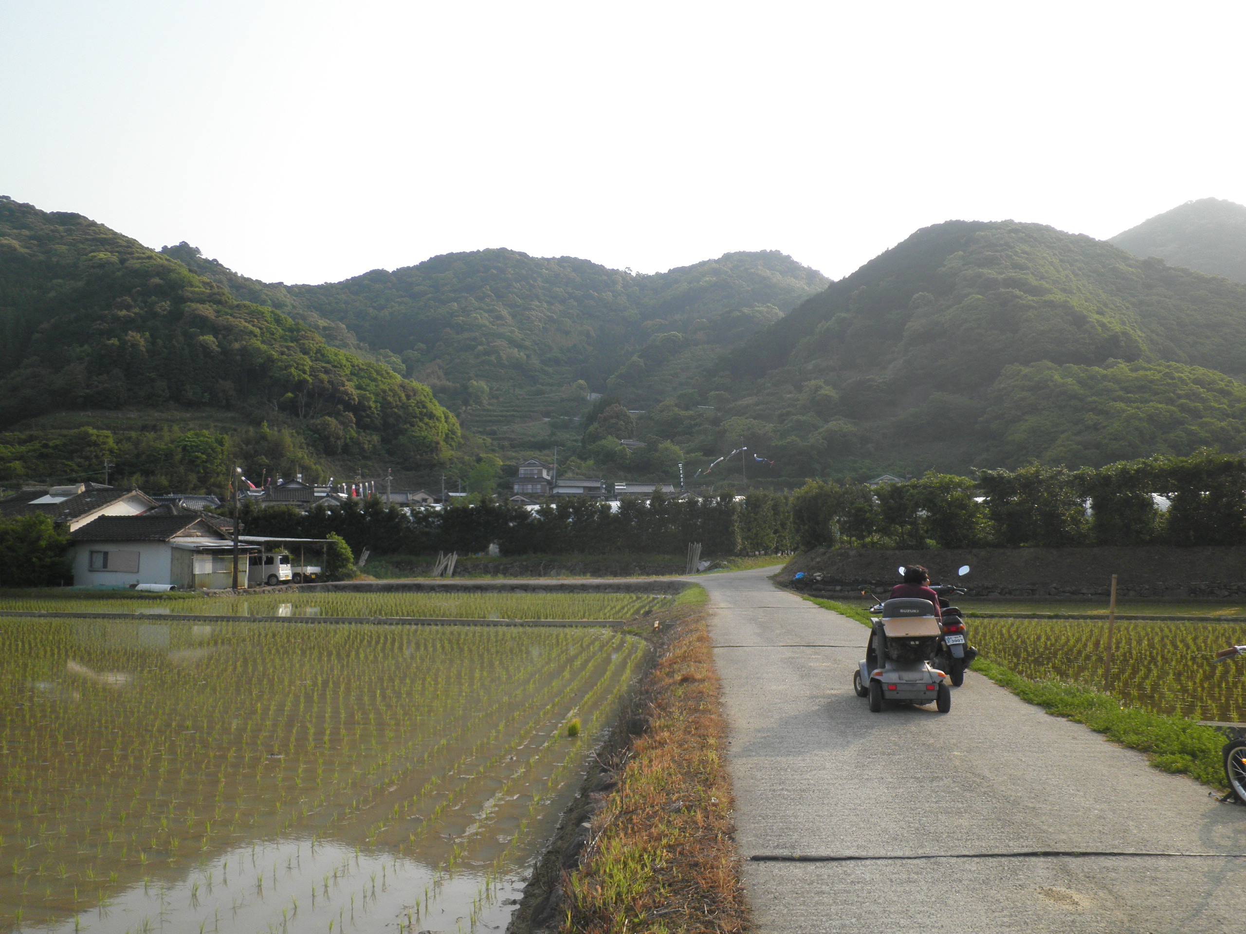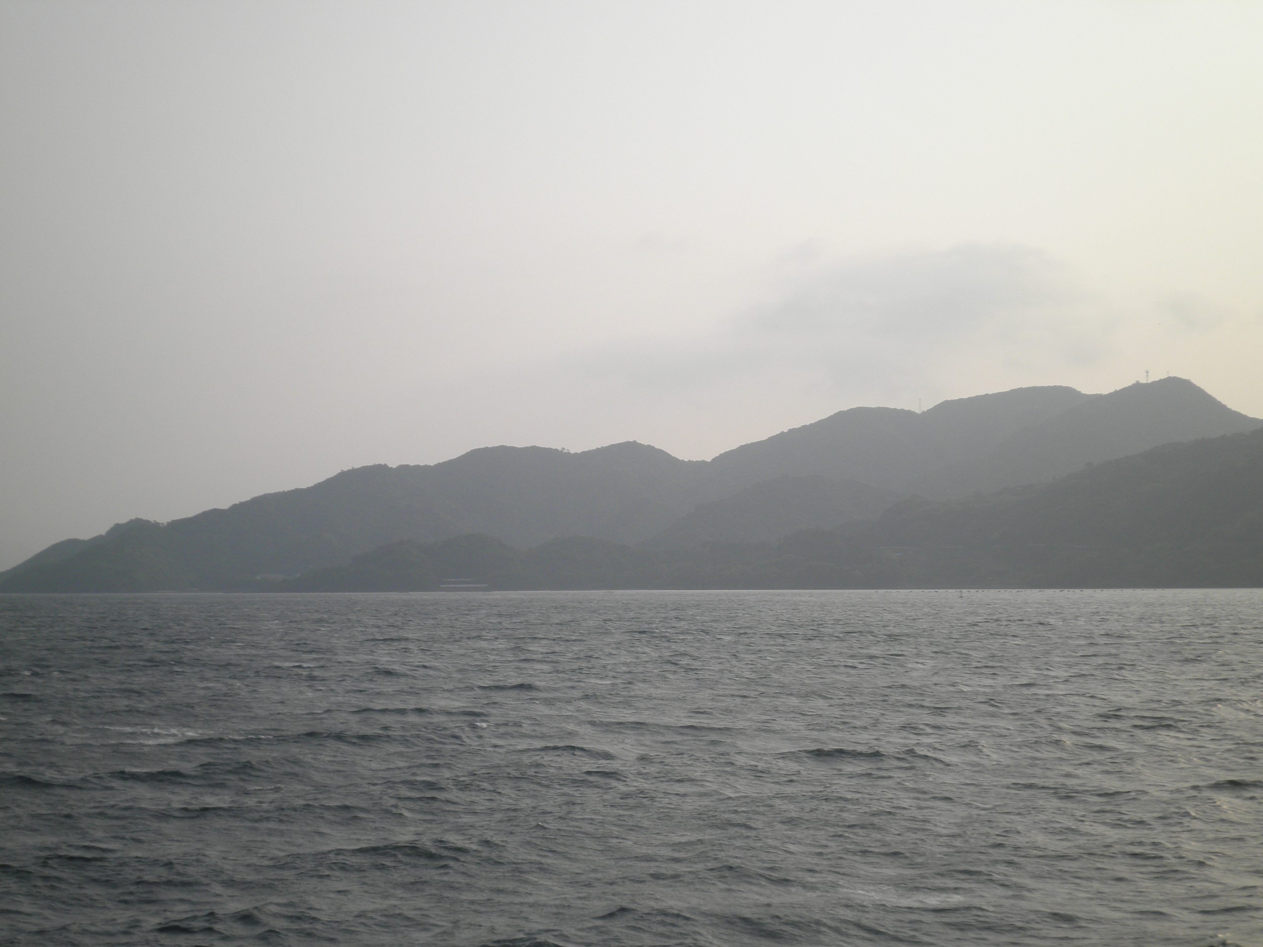 46 黒崎丘(鹿児島県出水郡長島町獅子島 付近 ) 画像中央の小山です。天孫降臨足跡最後の丘です。猿田彦が高千穂峰に導いた業績を称え、鳥神岡を経て高千穂峰につながっています。鳥神とは猿田彦のことなのかもしれません。