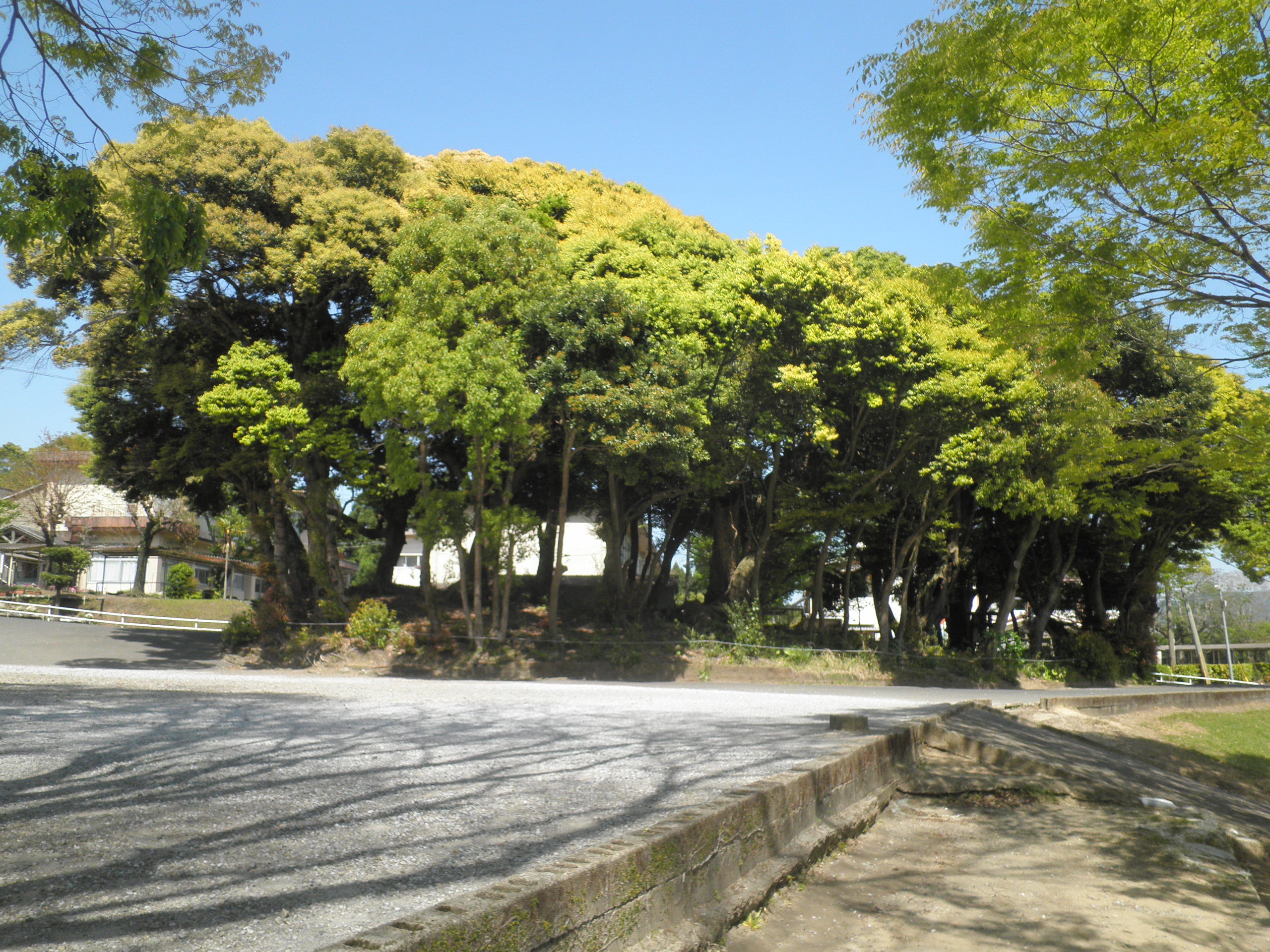 56 勿体岡(宮崎県串間市西方 付近) 中学校の入口にあるこの小さな森に勿体岡の名が付いています。勿体とは大事にすべきもの、ここは大事にすべき場所という意味なのでしょう。