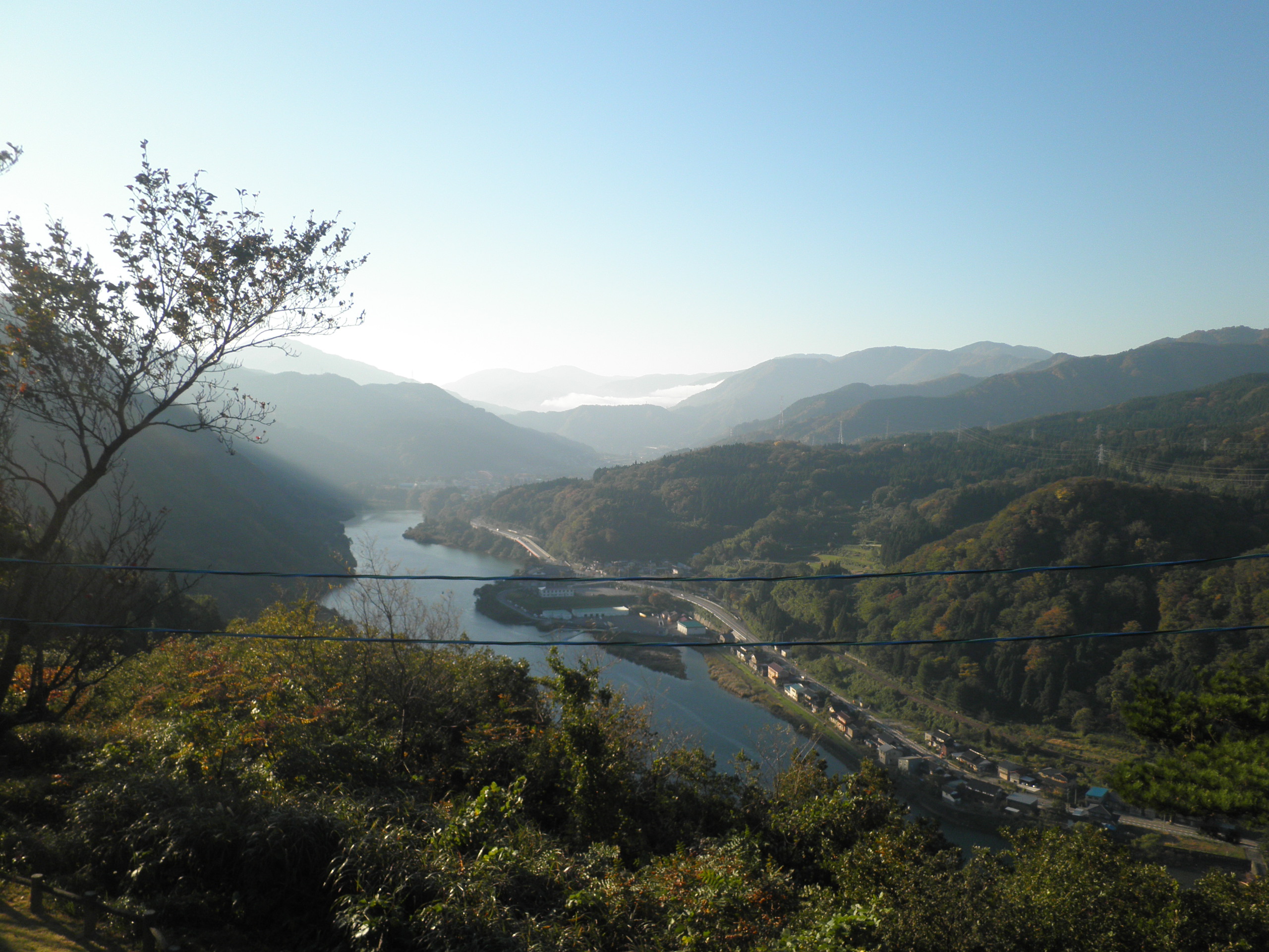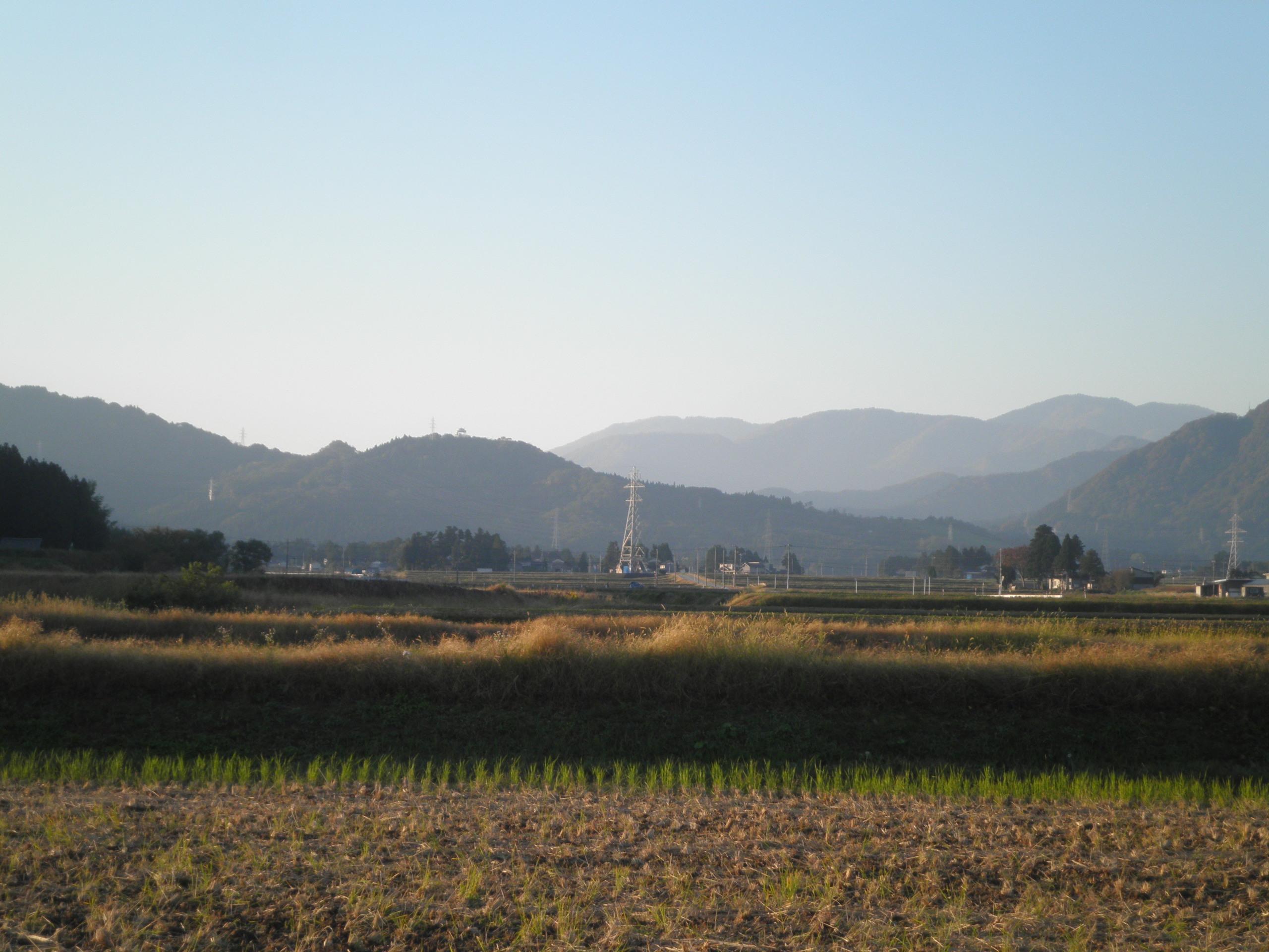 106 猿倉山(富山県富山市寺家 付近 ) 前方中央やや左にある右流れの山です。右端を神通川が通ります。神通川が富山平野に出る地点にあります。近くに姉倉比売神社がありました。下段画像は猿倉山から見た神通川の上流方向です。