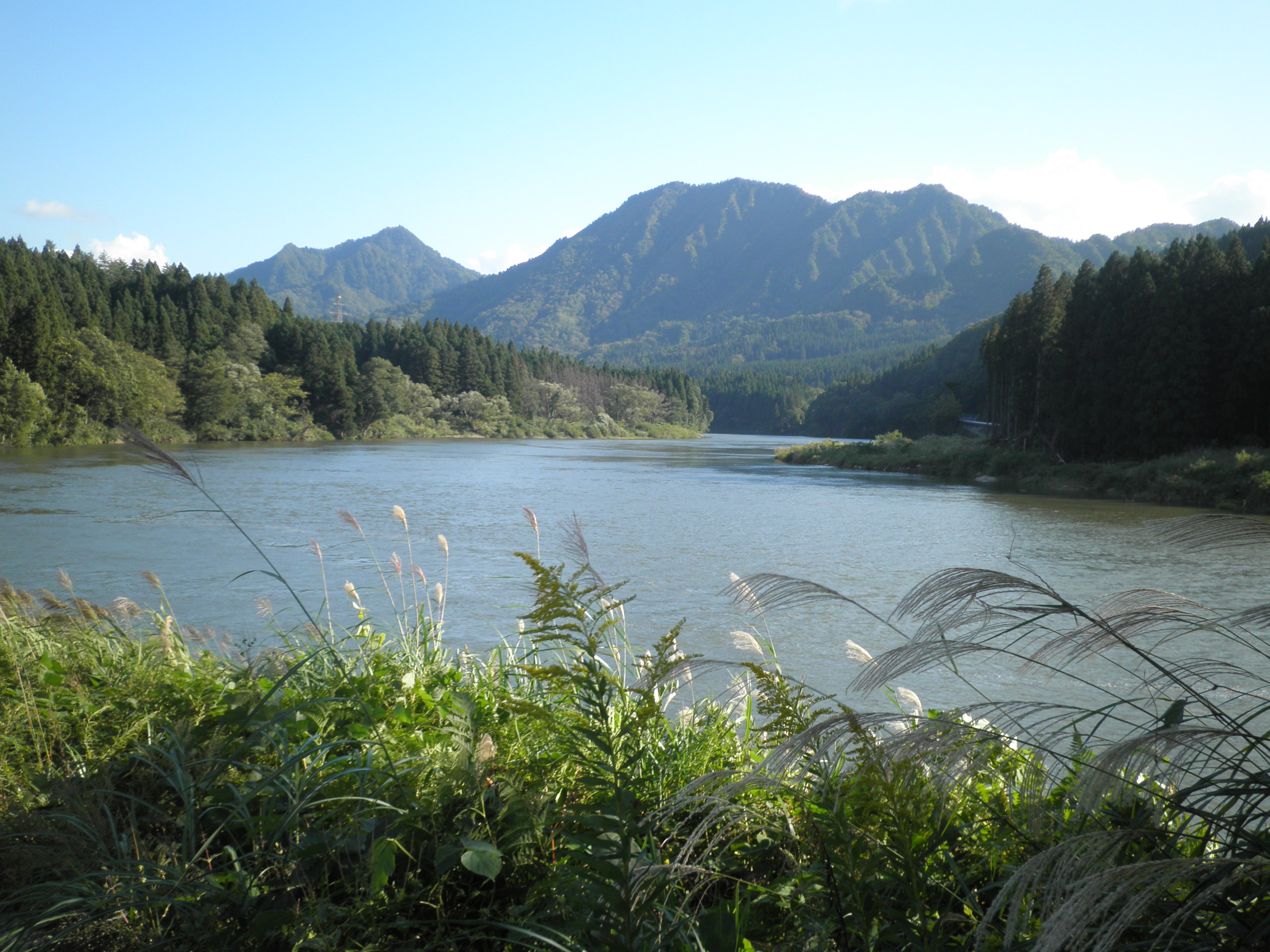 111 兎ケ倉山(新潟県東蒲原郡阿賀町日出谷 付近 )餅倉山がある倉ノ平から登山道があったが、熊が怖くて道に入れなかった。反対側に回ると阿賀野川にそった街道から見ることができました。上段画像では山頂部がわずかに見えます。下段画像は左方のトンガリ山です。