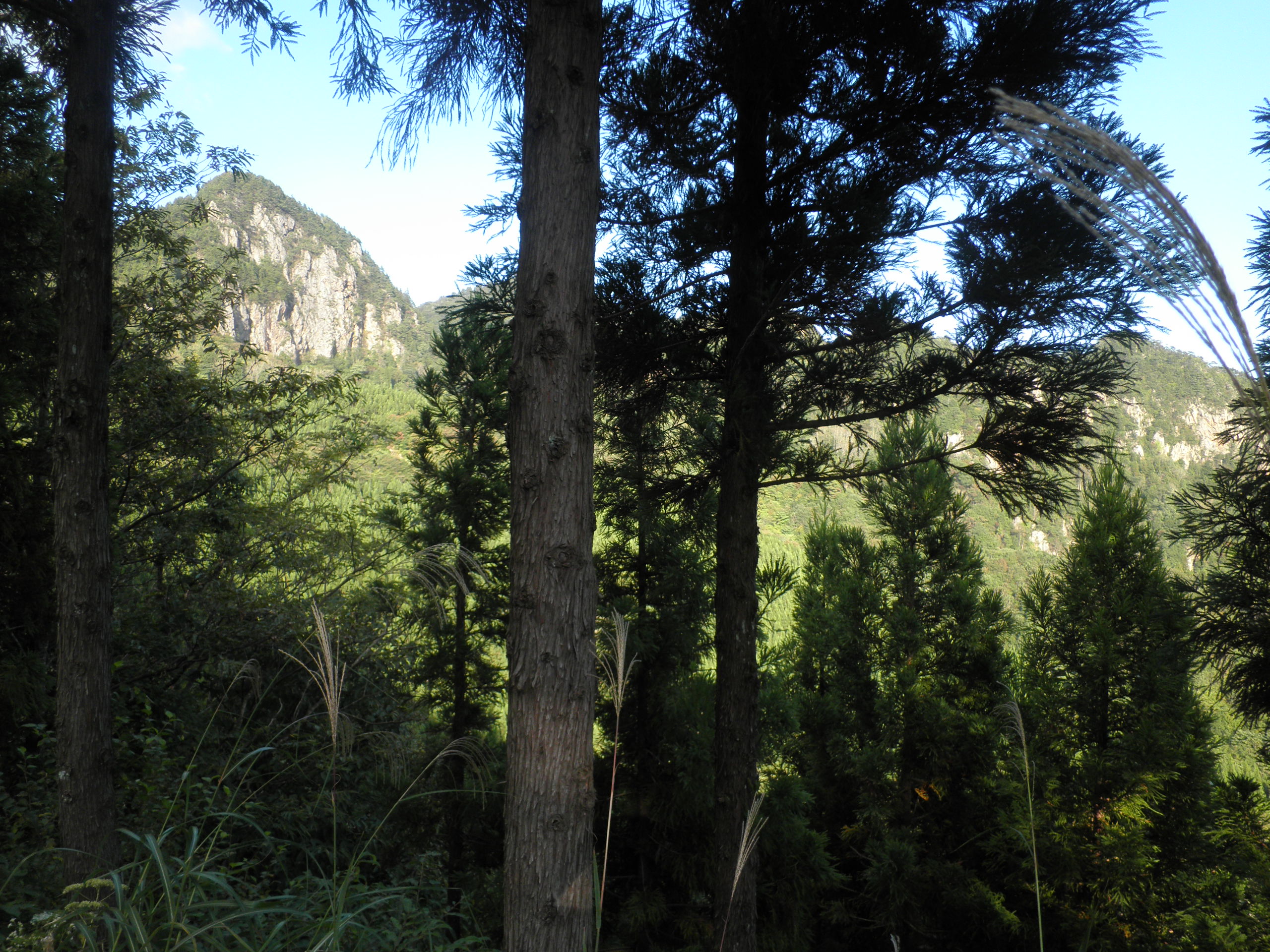 119 荒倉山(新潟県東蒲原郡阿賀町白崎 付近 ) 阿賀野川沿いの若松街道が工事で通行止めで、迂回し山中に入りました。荒倉山はその名の通り岩山の荒れた山で、阿賀野川に沿って立ち上がっています。下段画像は左尾根に立ちあがる山です。