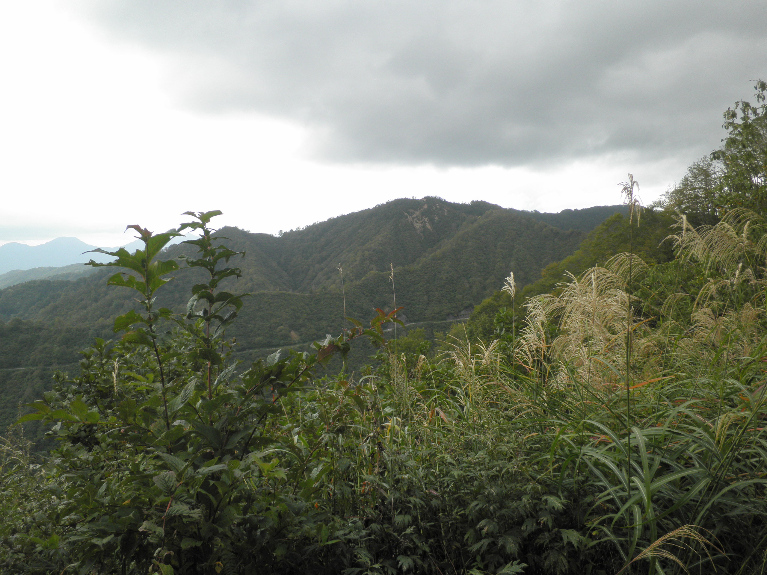 133 鼓が倉山(新潟県魚沼市 付近 ) 枝折峠から魚沼に下りる道で撮影しました。カシミール3Dで確認すると、この山で間違いなさそうです。