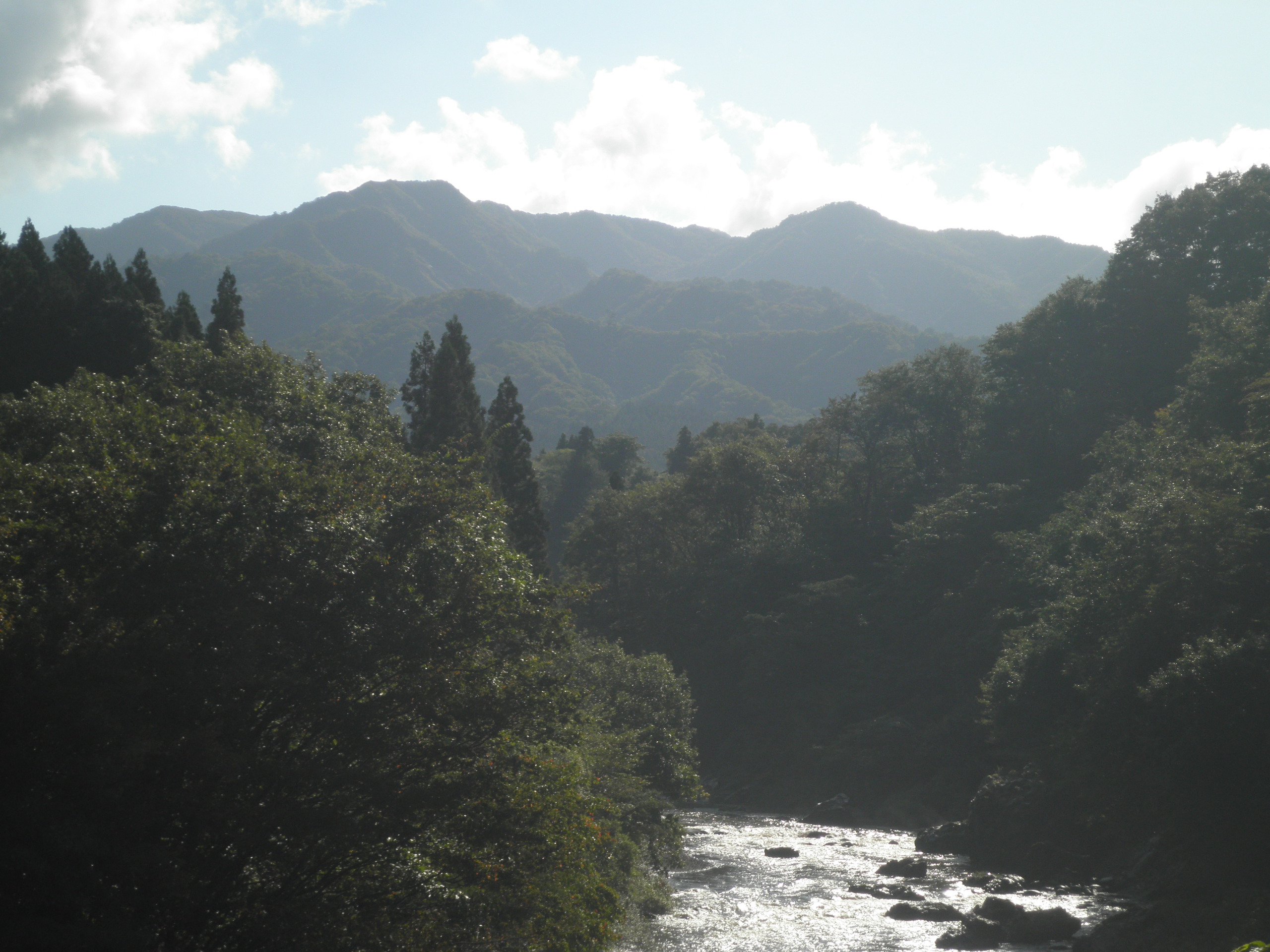 143 日倉山(新潟県五泉市小面谷 付近 )中央奥に日倉山はあるが、見えているのか見えていないのか確定できない。日本平山はこの右手であるが見えない。日本平山がみえる場所は見つけられなかった。