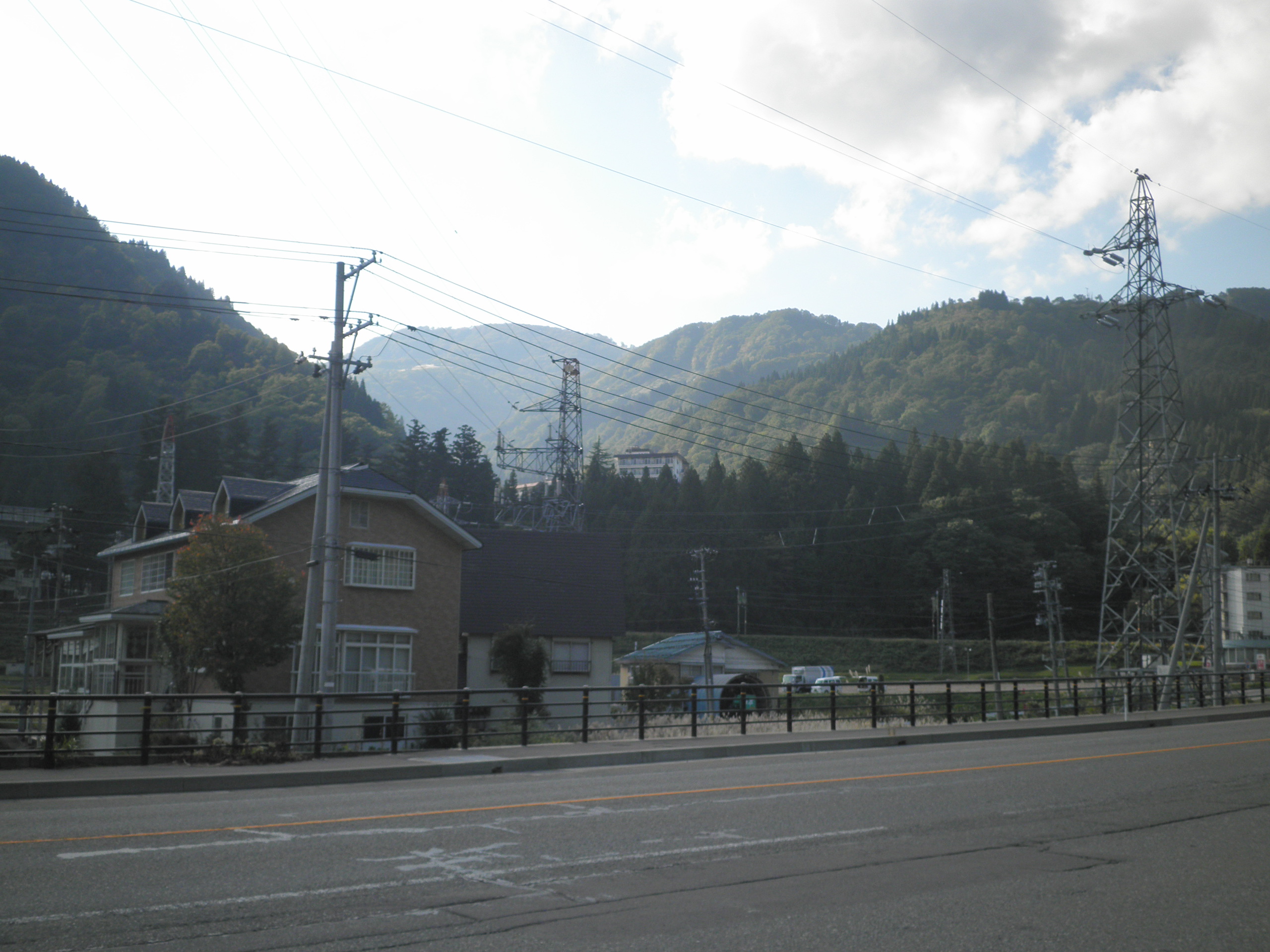 159 高津倉山(新潟県藷町市 付近 ) この付近は多雪地帯でスキー場が多い。高津倉山もスキー場になっていています。三国街道のガーラ湯沢駅付近で、谷間の向こうに見えました。なぜ高津倉の名をつけたかは解けていない。