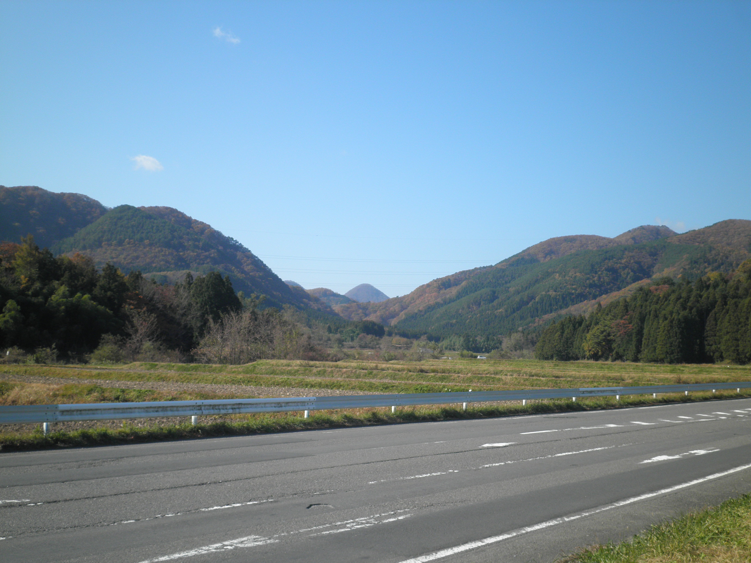 240 権太倉山(福島県白河市大信隈戸 ) 天栄村に降りる峠の横にありました。天栄山も近くにあり、村の名前の元となったのでしょう。下段はその峠を降りる谷です。右の山は天栄山です。