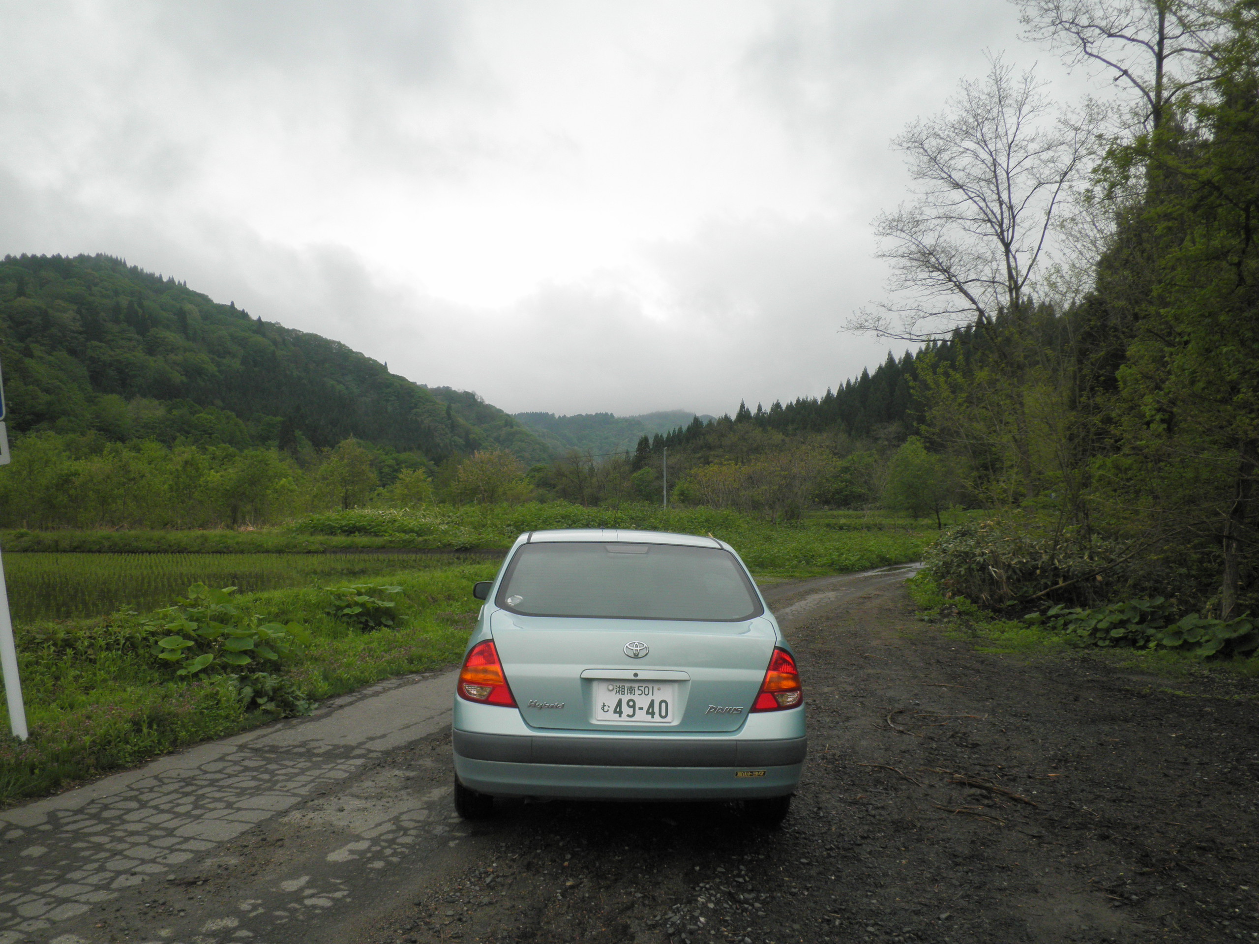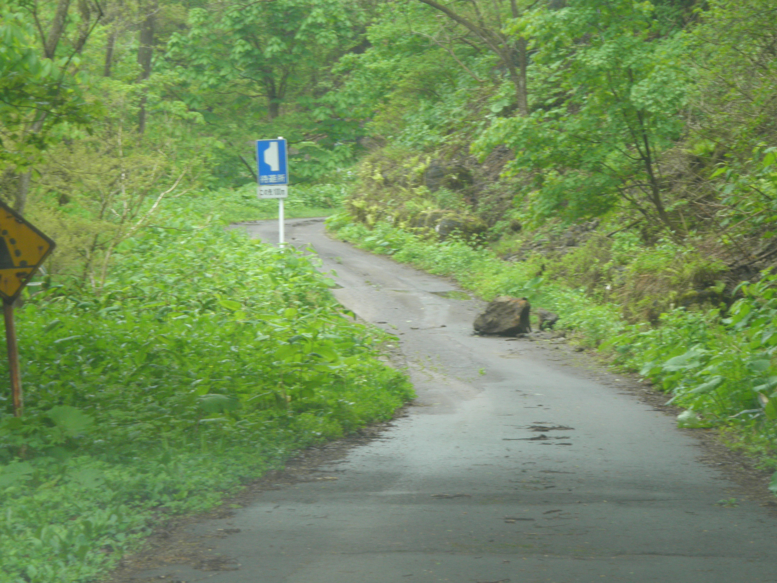279 面倉山(秋田県大館市白沢 付近 ) この山も直線を作るために選んだ山なので、特定が大変でした。谷間の一番奥の山が面倉山と思われます。秋田の道は他県に比べて悪い。下段画像のような岩が直撃したら大変なことになります。