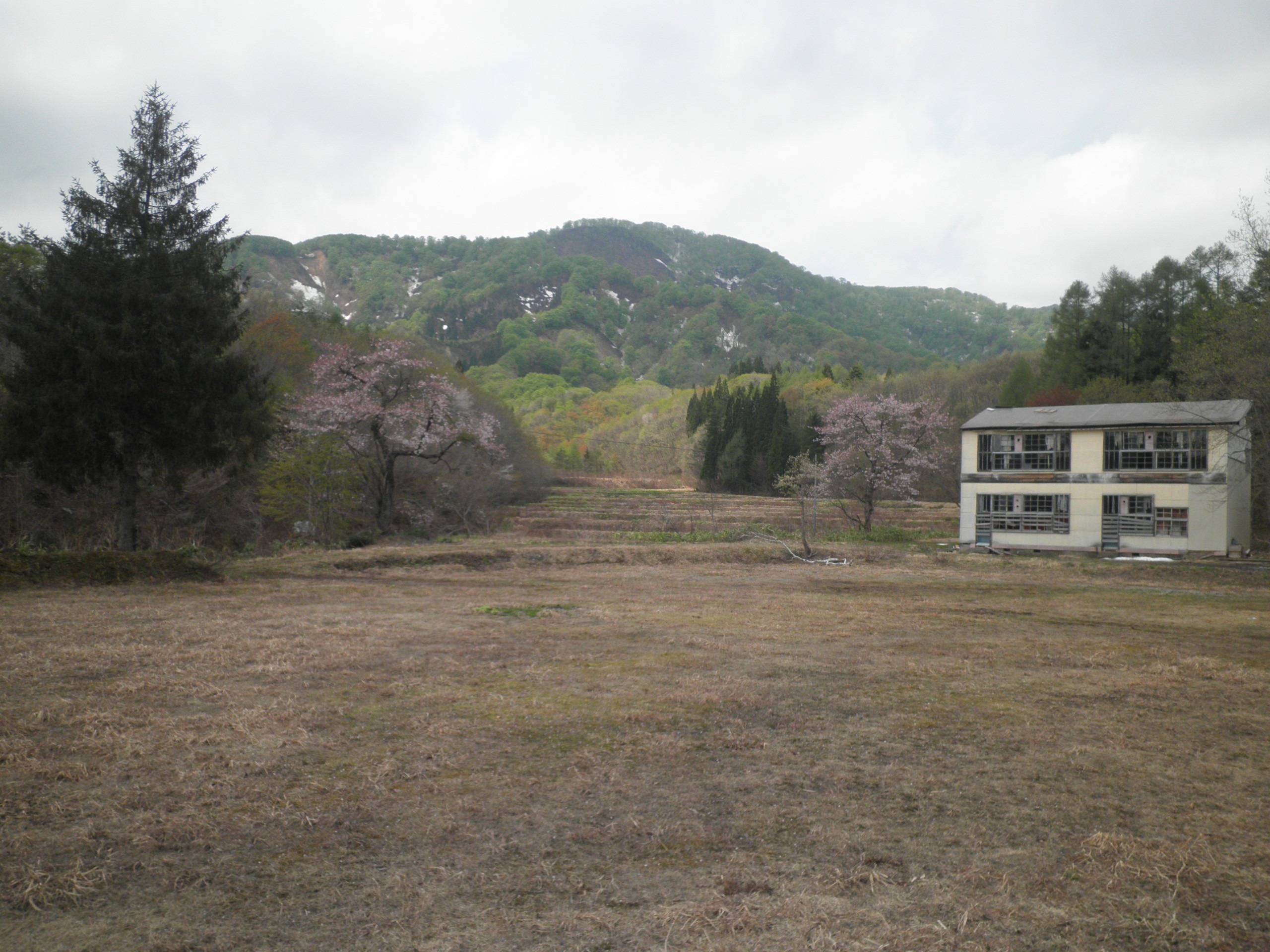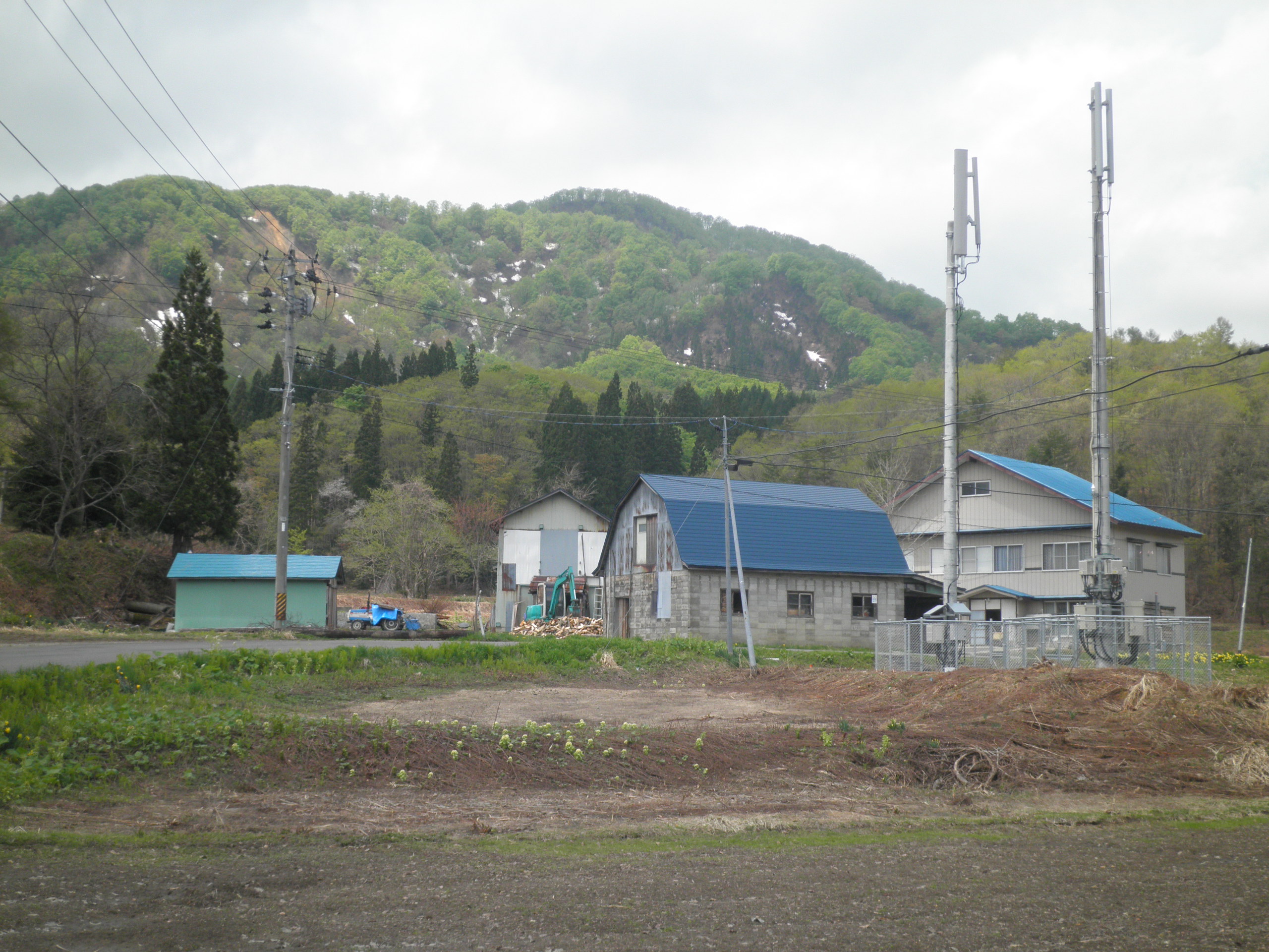 283 割倉山(秋田県横手市山内大松川 付近 ) 岩手県側から廃校となった分校の校庭から見ています。付近には廃屋が目立ちます。下段画像のようにケータイのアンテナだけが新しい。