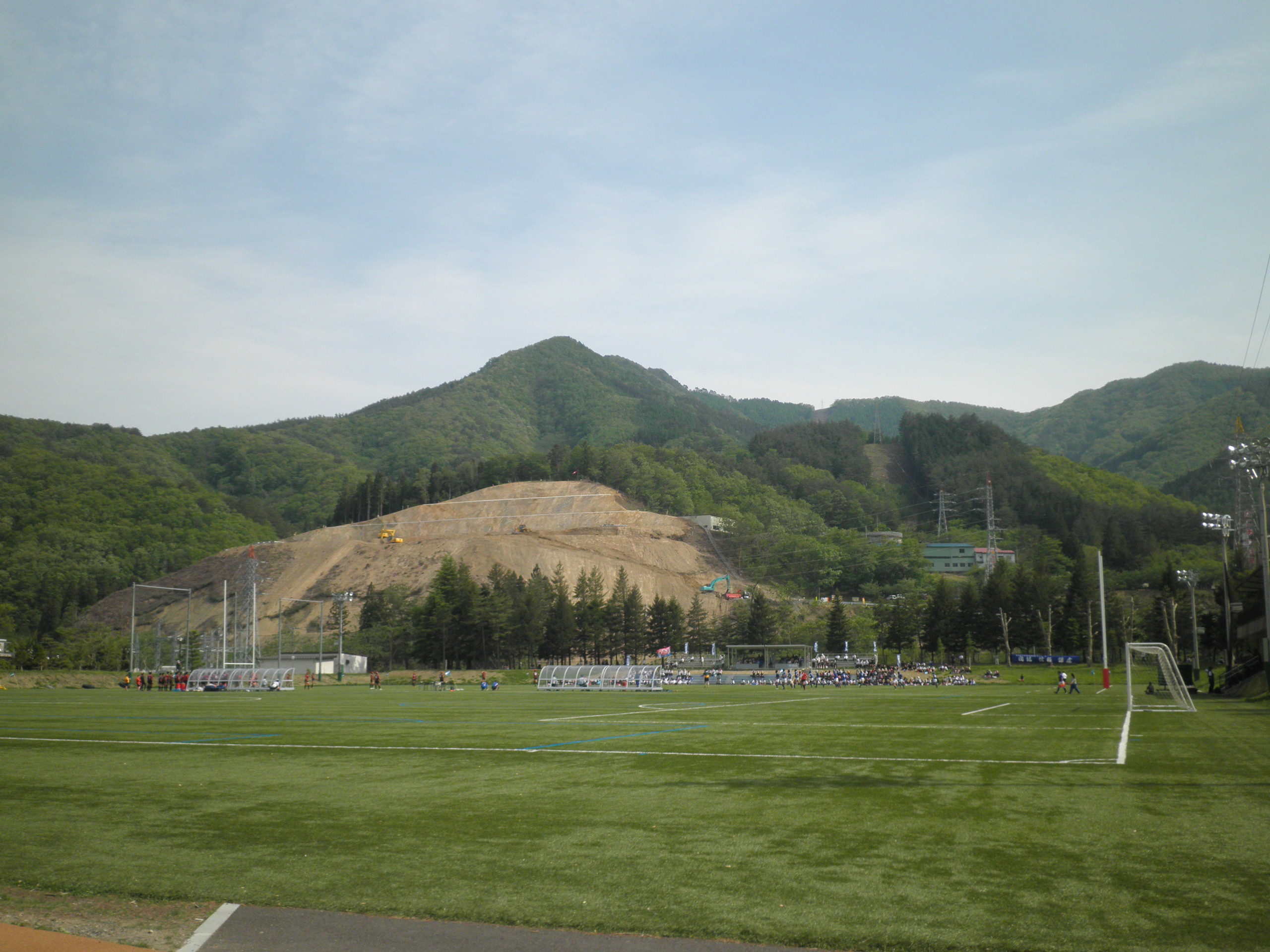 335 松倉山(岩手県釜石市唐丹町 付近 ) 甲子川に沿って三つの○倉山が並んでいます。釜石の鉄を意識した名づけかも知れません。釜石校グランドから見ています。下段は横から見た画像で、三つのピークの最後方が山頂部です。