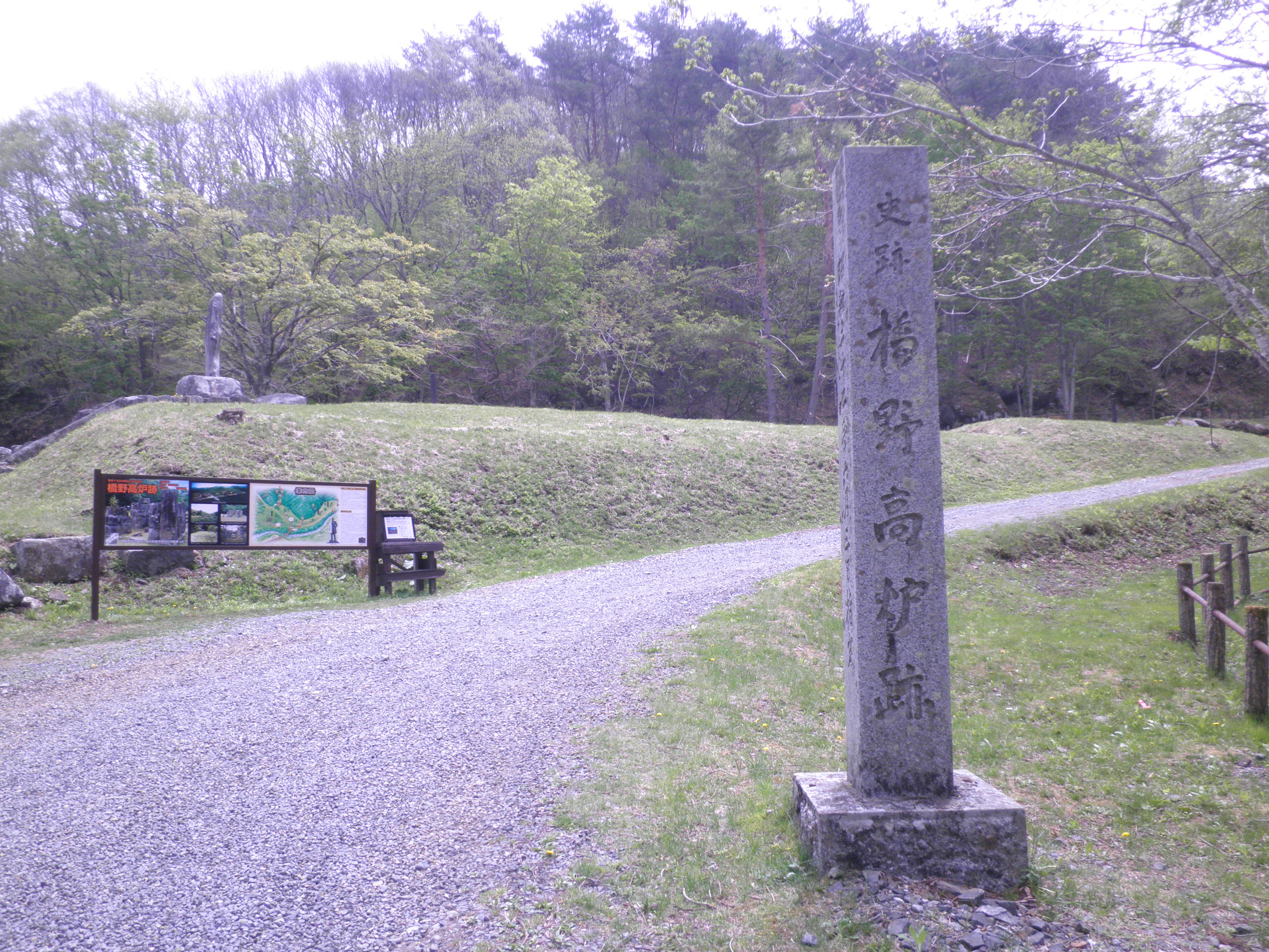 338 二ノ倉山( 岩手県釜石市橘野 付近 ) 遠野から権現山がある笛吹峠を越えて大槌に向かう途中にあります。中央前方の二つのピークがある左手前の山です。下段画像のように近くには、高炉跡が残り、この山も鉄と関係した名づけと思われます。