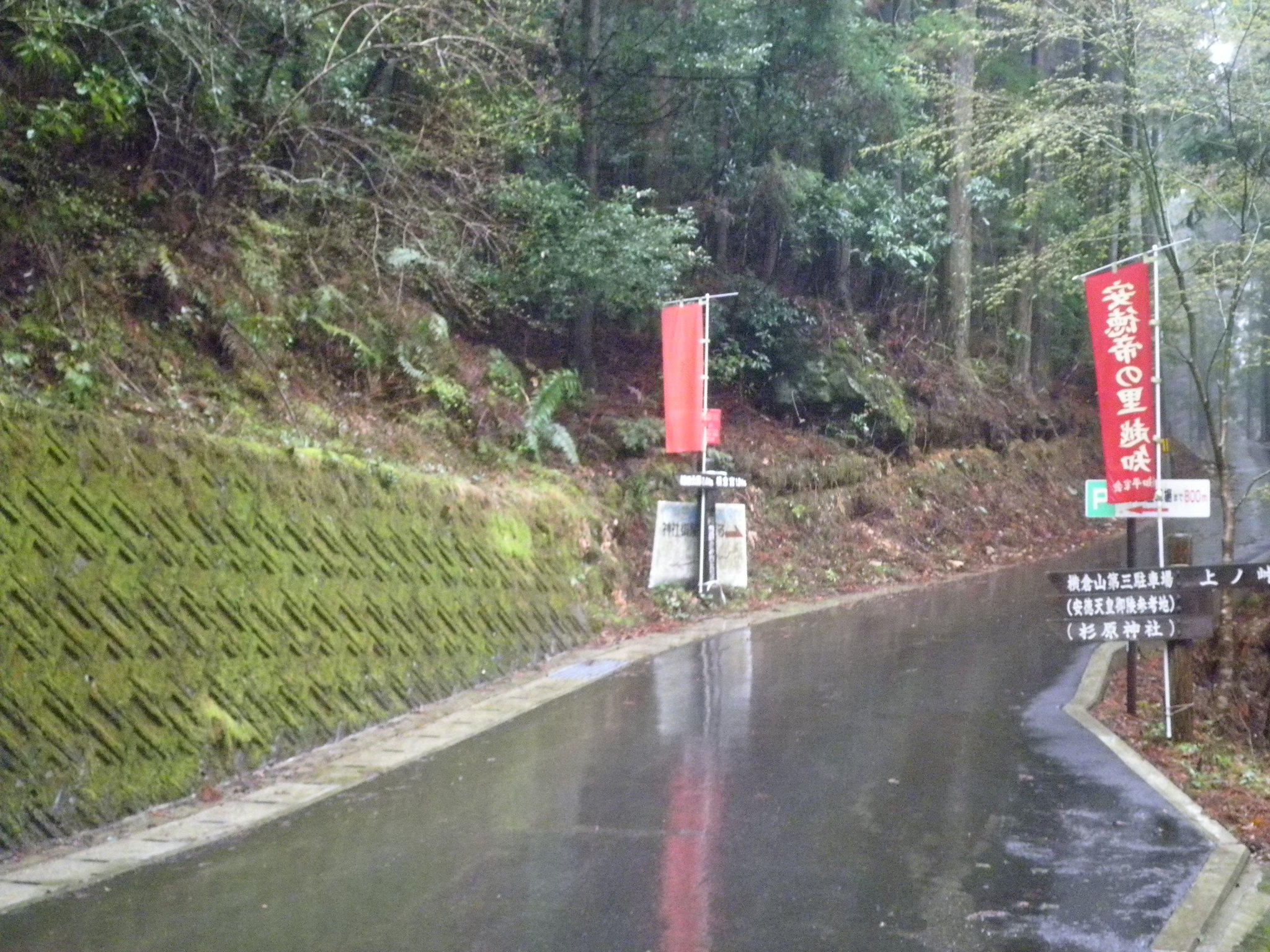34 横倉山(高知県高岡郡越智町越智 付近 ) 山頂近くまで車で登れるとのことで、6kmくらい進んだと思われます。雨で山頂は確認できませんでした。安徳天皇が祀られているのは、平家の落人の影響か。横倉の名も父、高倉天皇の影響かもしれない。