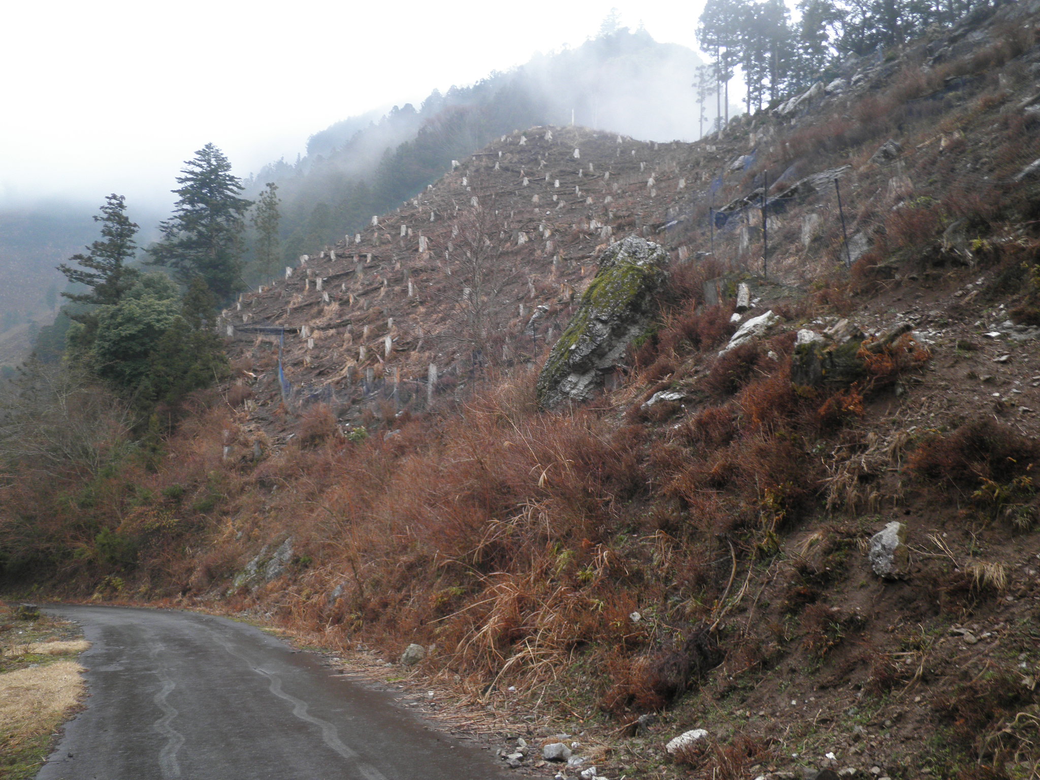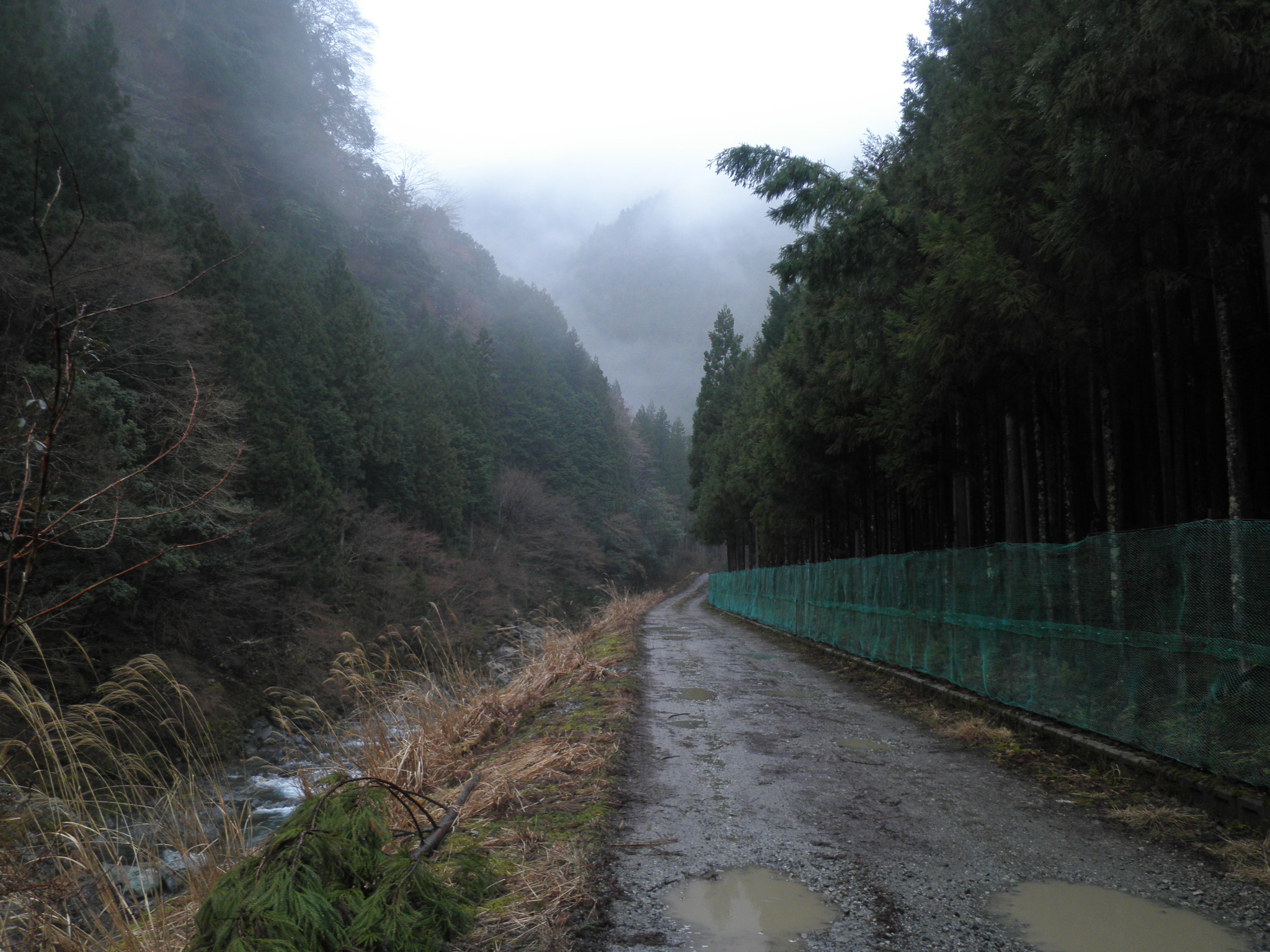48 赤倉山(奈良県吉野郡川上町中奥 付近 ) 谷深く4kmまで接近したが、雨模様でこの先で断念しました。下段の画像は近くの宮ノ谷で見つけた祠(蓮里滝神社)です。右の崖にある岩陰にあります。良く見ないと分かりません。
