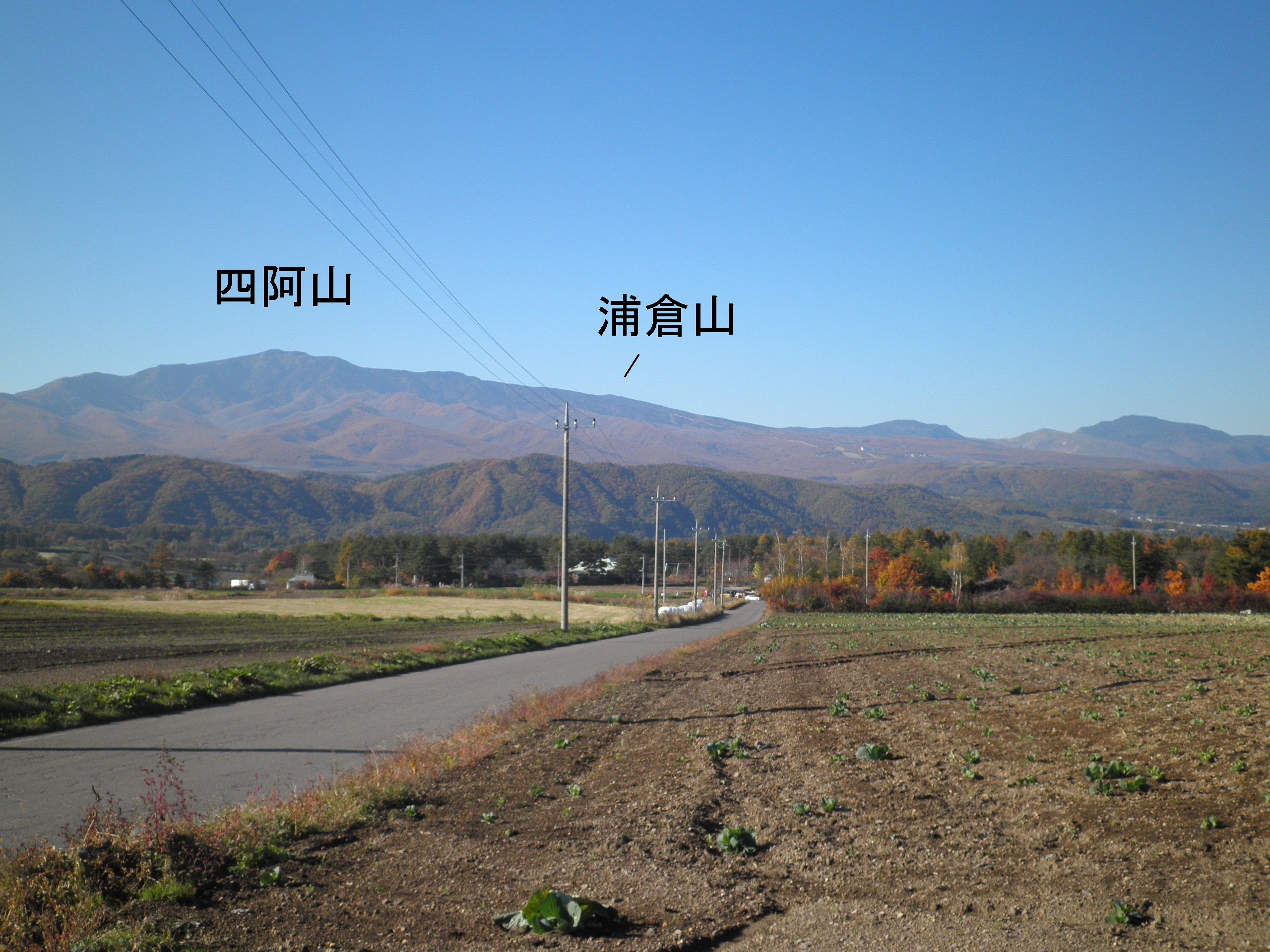 78 浦倉山(長野県須坂市米子 付近 ) 群馬県側の嬬恋村から見ています。スキー場のゲレンデの上に見えました。四阿山の尾根にあり、四阿山の添え山であることが分かります。