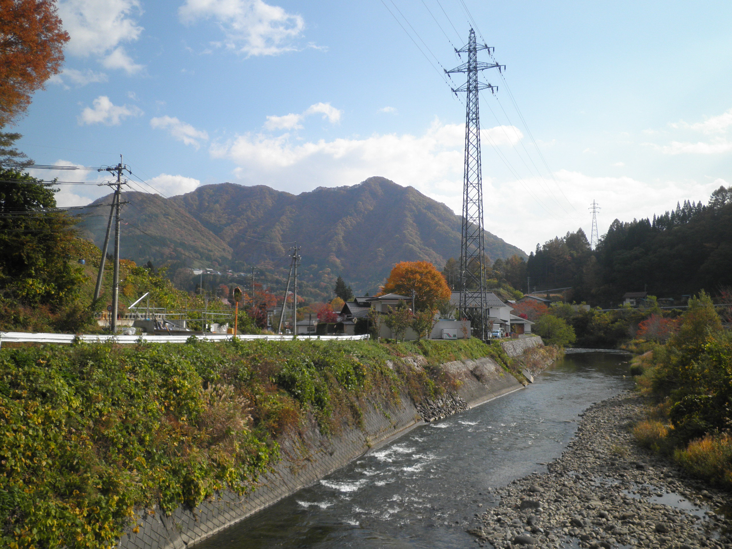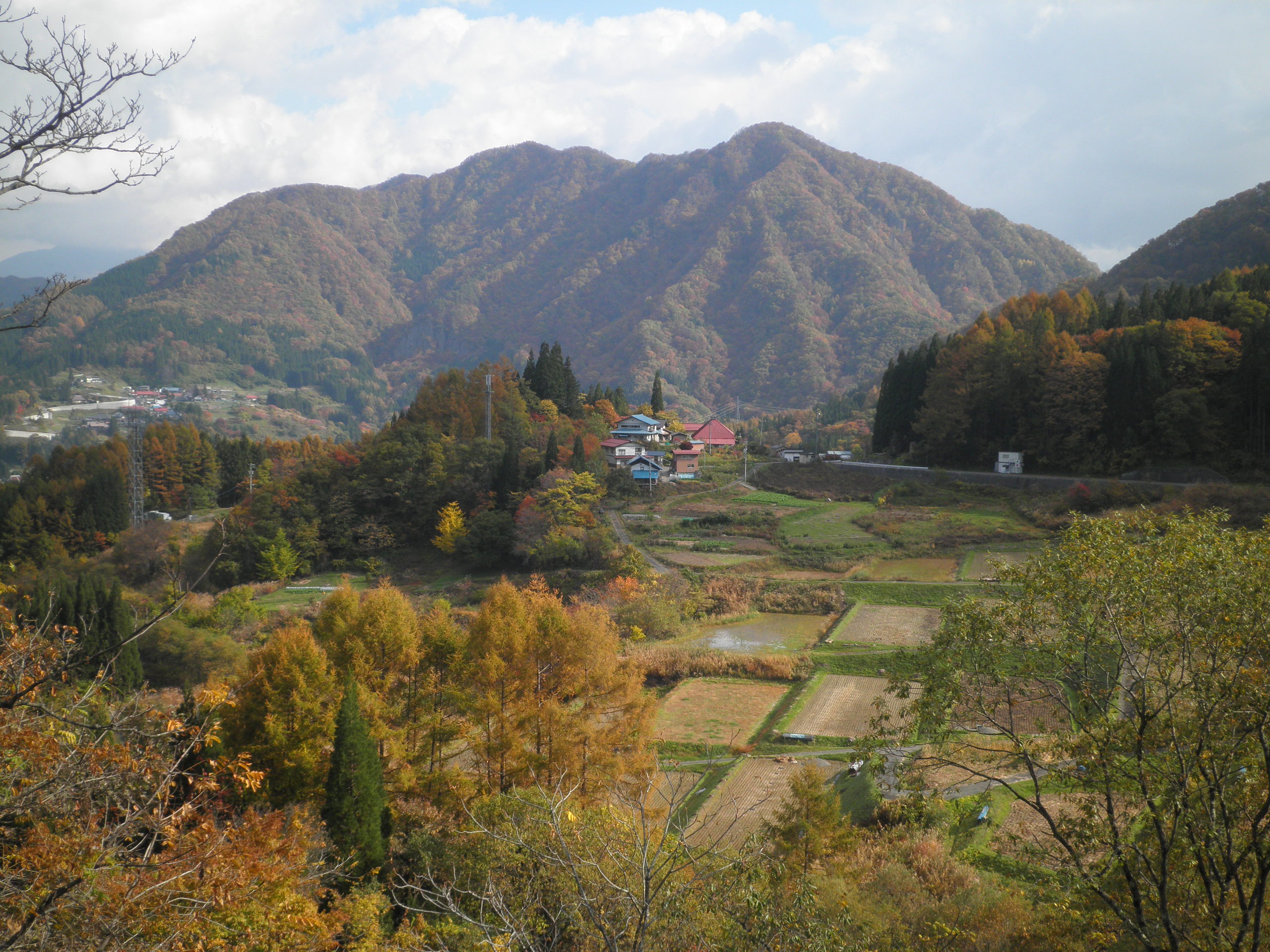 82 新倉山(長野県長野市鬼無里 付近 ) 上段画像前方の大きな山が荒倉山です。その荒倉山の右のややトンガリの山が新倉山と書いてやはり「あらくらやま」です。虫倉山と対で何かを残しているかも知れません。麓は鬼無里(きなさ)です。