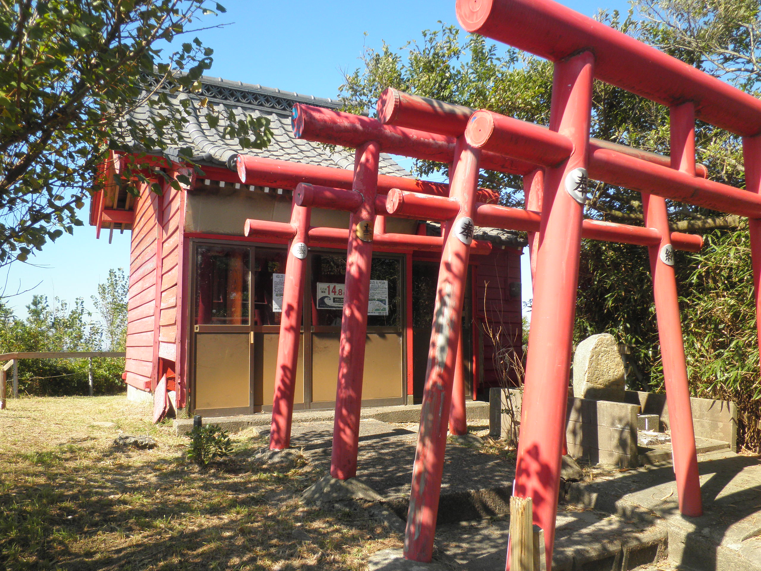 13 稲荷山 (新潟県村上市海老江 付近 ) わずか15mの稲荷山ですが、登るとはるか向こうの鷹取山の山並みが見えます。古代の船をつけるに適した砂浜もあります。