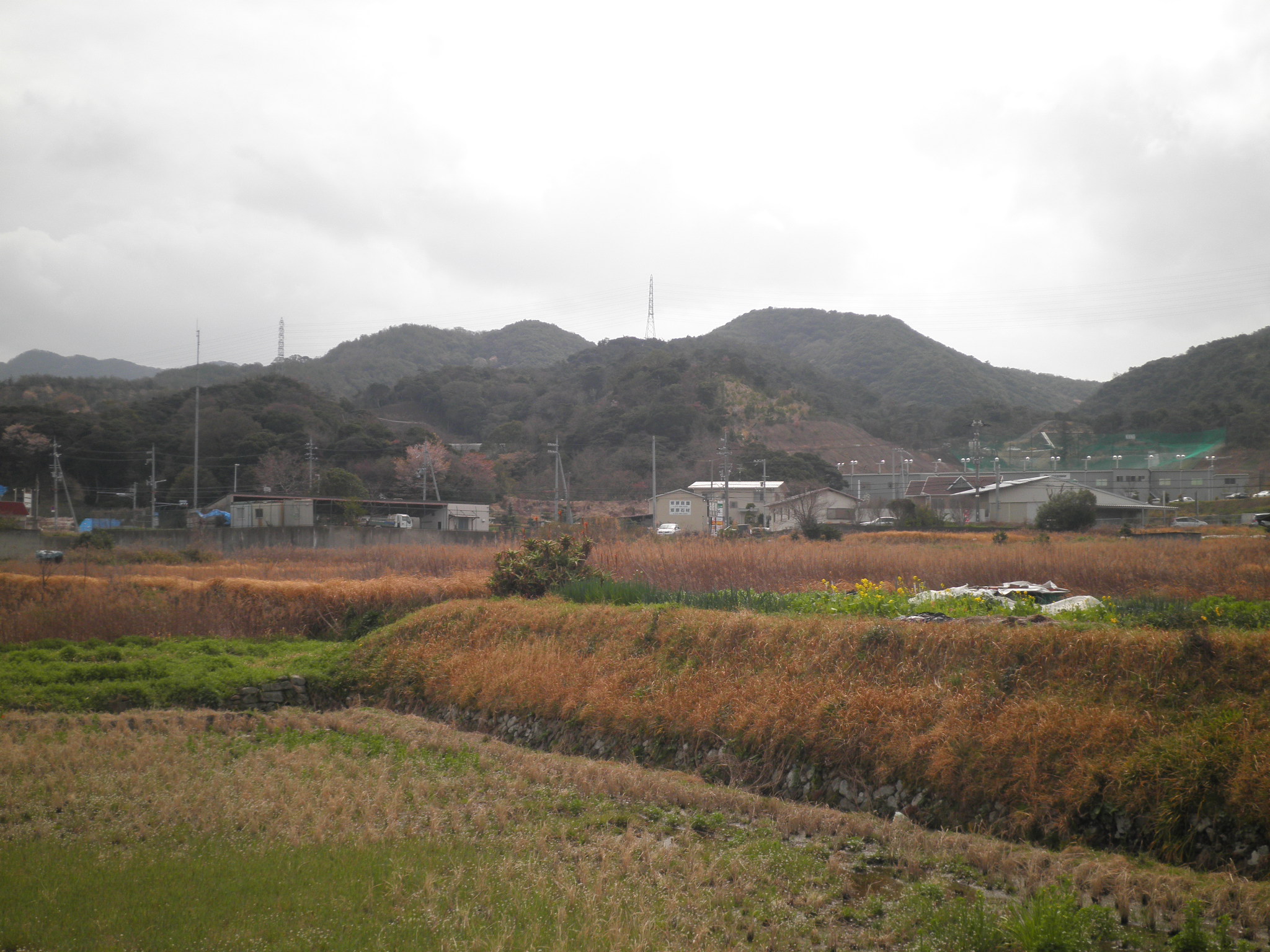 7 稲荷山 (大阪府泉南郡岬町淡輪 付近 ) 上段画像の中央手前の低山です。ゴルフ練習場の横にありました。ここから淡路島が良く見えるとのことです。この山の前の道を、豊受大神は和歌山に進んだのでしょう。