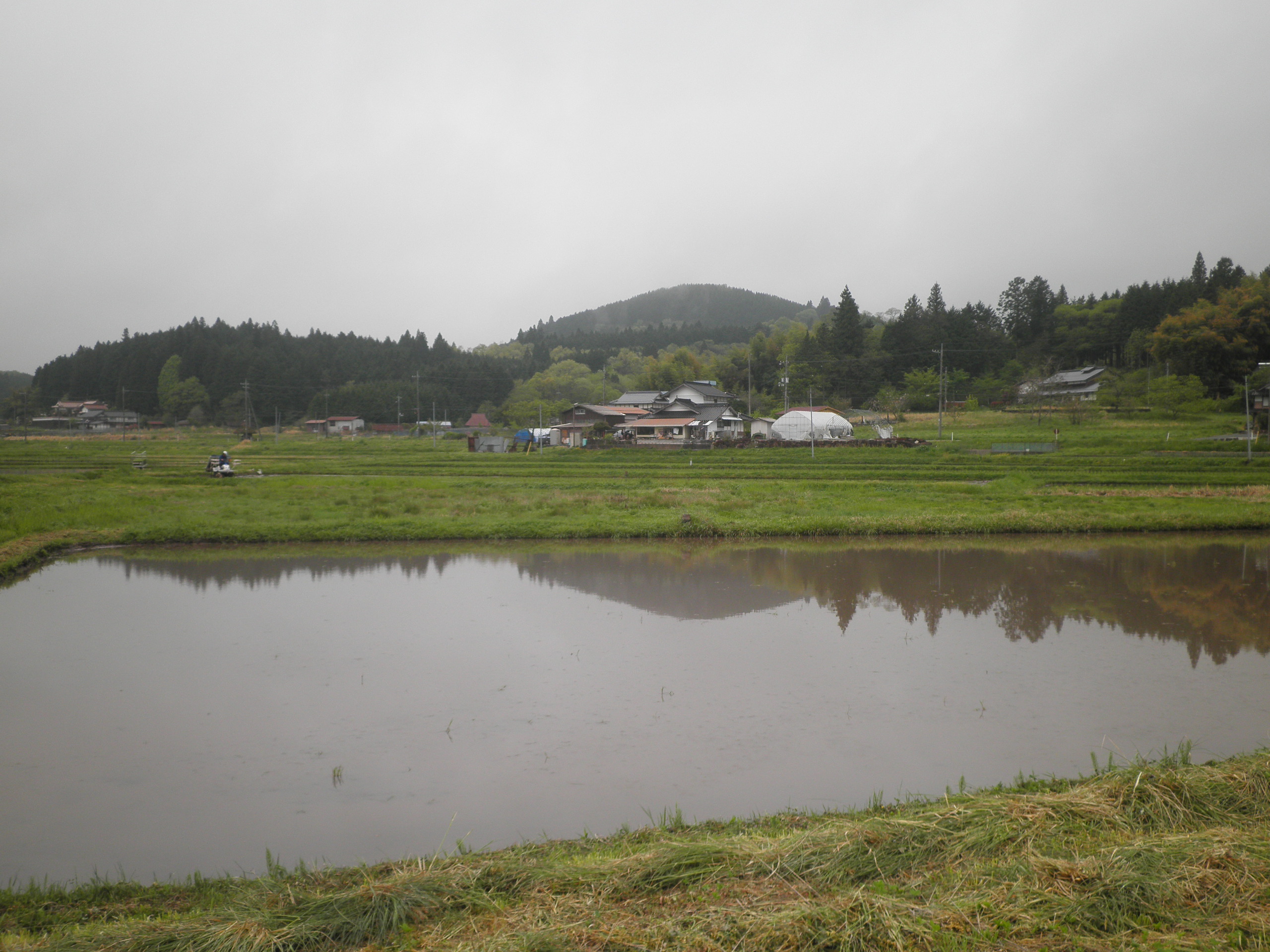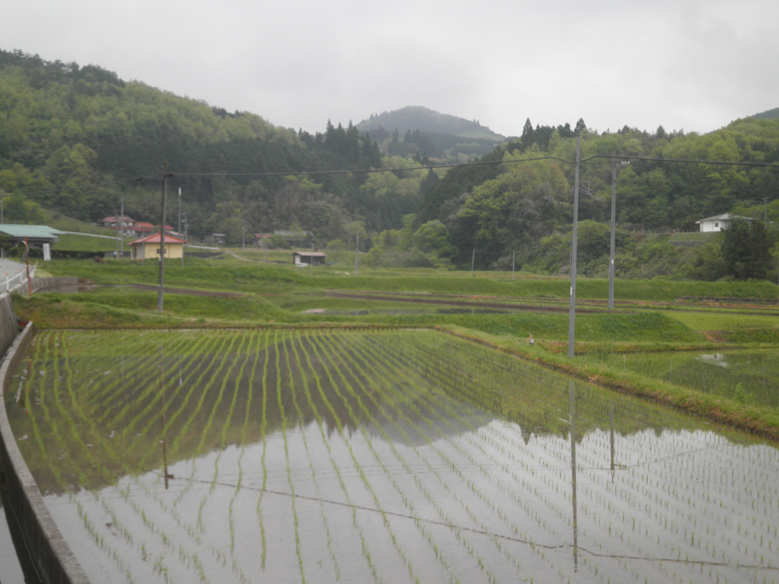 10 明神山 (岡山県新見市哲西町大野部 付近 ) 上段画像。山の東側は高原です。下段画像の様に、西側は麓に田んぼが広がる谷戸地形です。この明神山の谷水を使用する田んぼです。