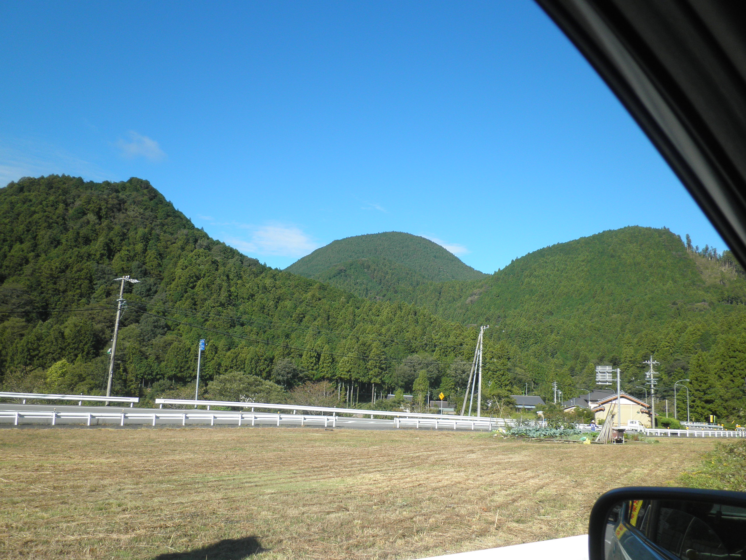 15 明神山 (愛知県北設楽郡東栄町本郷 付近 )東栄町から4kmほど離れた山中にあって、山頂部を確認できませんでした。上段画像の中央左の山か?