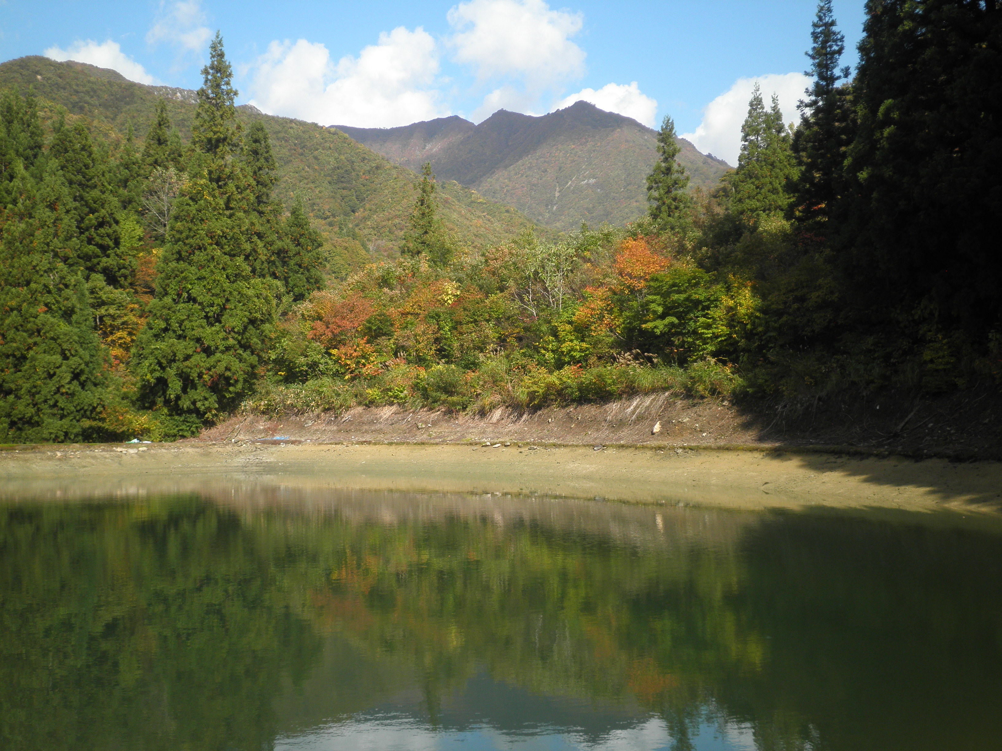 21 明神山 (新潟県魚沼市三ツ又 付近 ) 何度か尋ねたが山が深く撮影できなかった。今回は秋晴れの中で遠方からの撮影ができた。下段画像の前方の右端の山と思われます。その左が大倉山か。上段画像の右端奥に高倉山があるが定かでない。