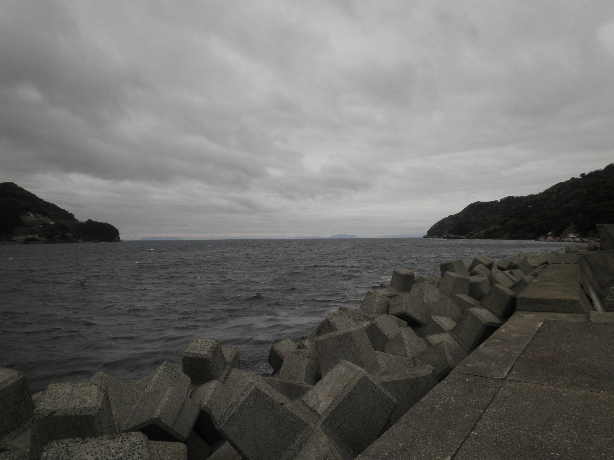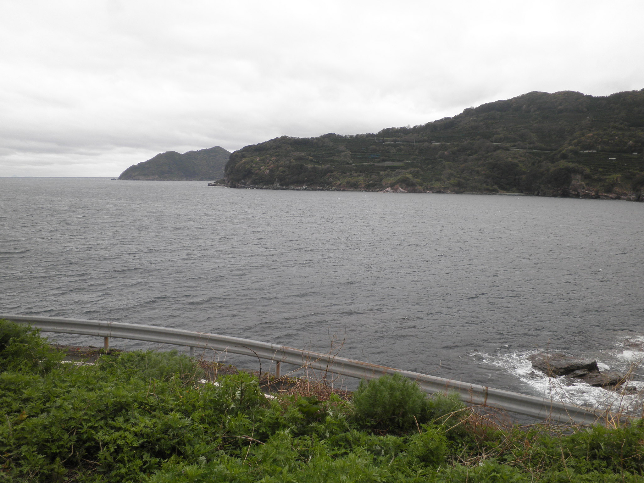20 長崎鼻 (愛媛県伊方町二名津 付近 ) 日本書記が記す二名島の伝承の浦かと考えましたが、後の世の名づけでした。上段画像の右が長崎鼻です。下段画像は左の岬の明神から長崎鼻(手前の岬)を見ています。