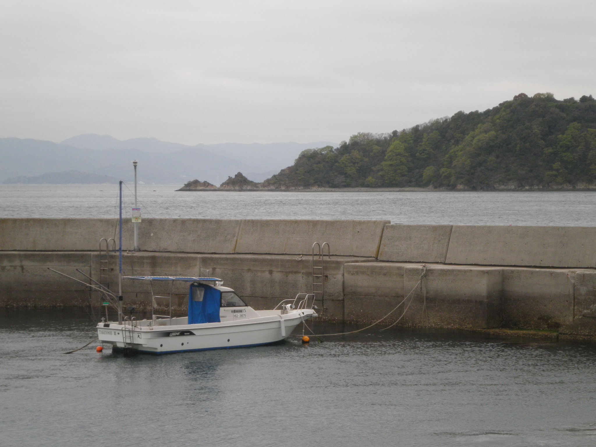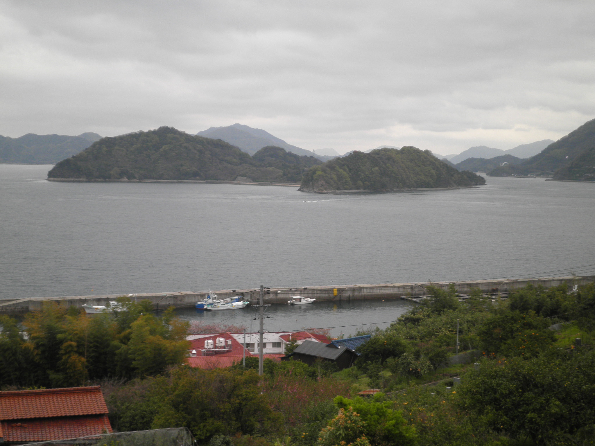 24 長崎鼻 (広島県呉市豊浜町大浜 付近 ) とびしま海道の豊浜町から写しています。上段画像の入り江のある島の右手前の岬が長崎鼻です。下段画像のように鼻の先に立石があり、区別しやすい岬です。