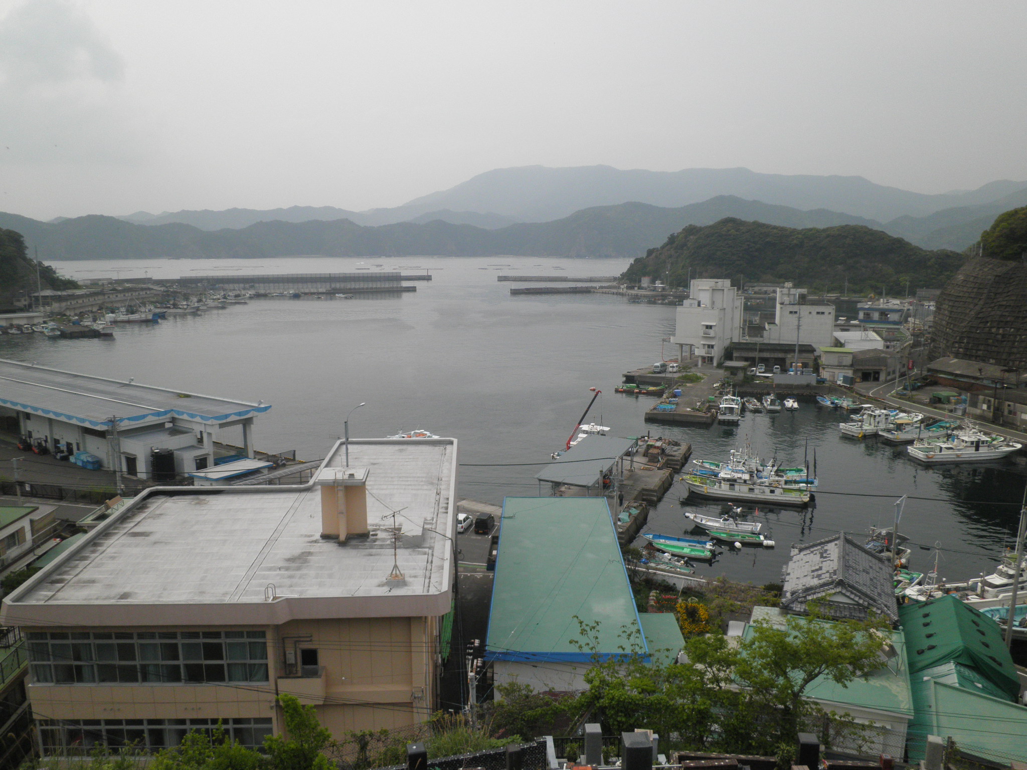 42 白浜 (宮崎県延岡市島浦町 付近 ) 浜は漁港になっていて残っていませんでした。山ぎわに島野浦神社があり綿津見命が祀られていました。