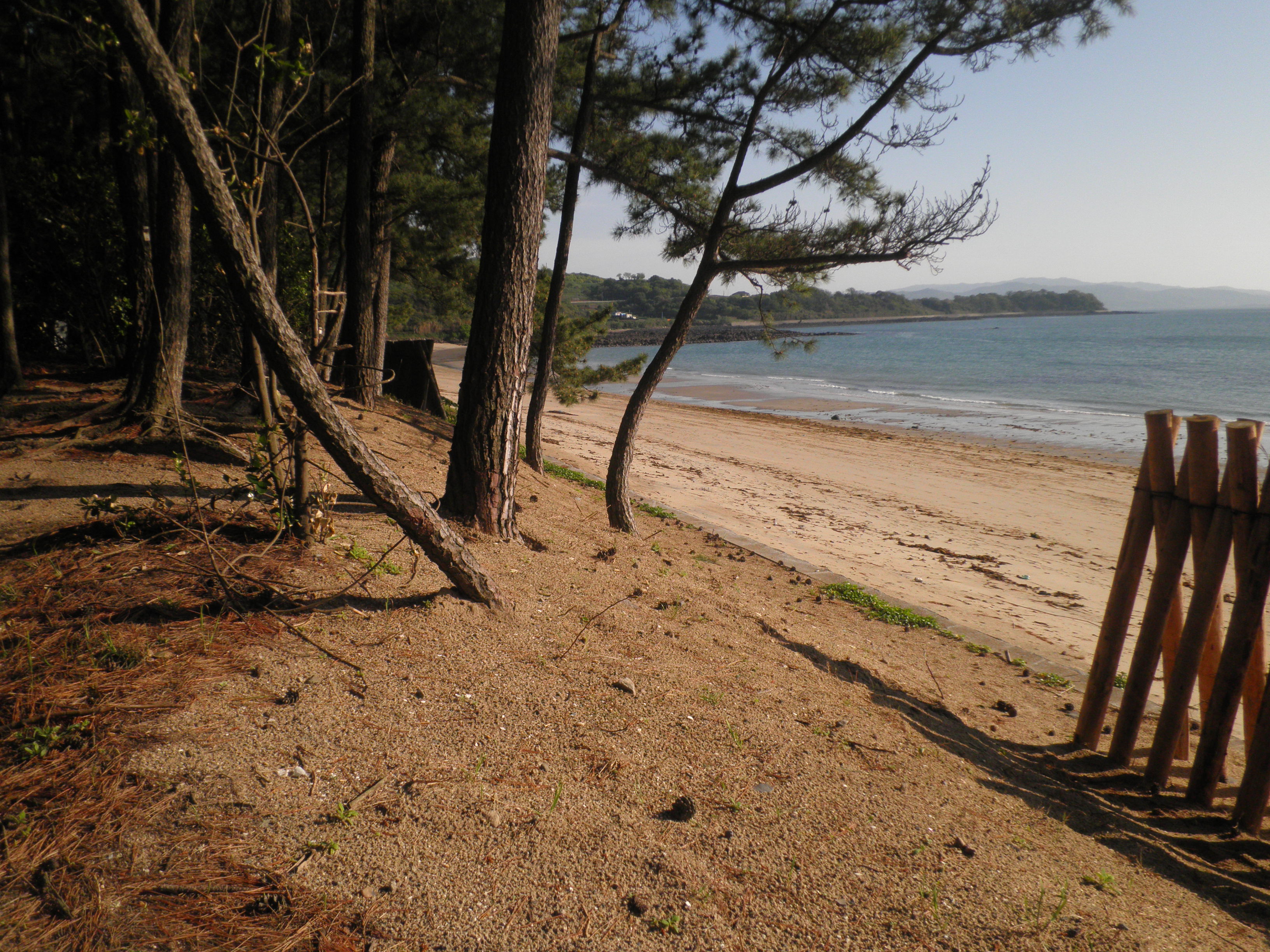 48 白浜 (長崎県南島原市口之津町甲 付近 ) 島原半島の先端の西岸にあります。松林の向こうに白浜はありました。