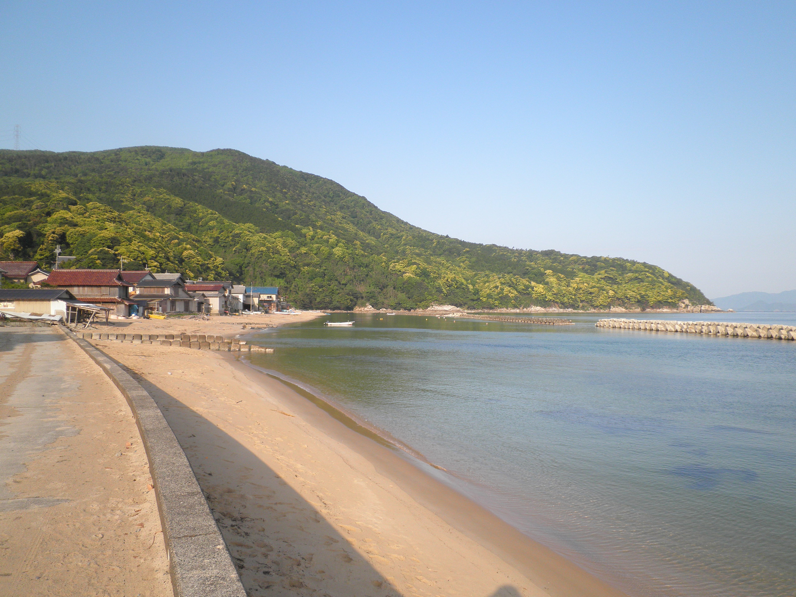 74 白浜台 (京都府舞鶴市白浜台 付近 ) 白浜台を訪ねると、新しいネーミングで白浜由来では無いとのこと。それでも近くの自衛隊の弾薬庫となっている岬に白浜があると話されていました。立ち入りできないので、湾の外にある竜宮浜を訪ねました。下段画像です。