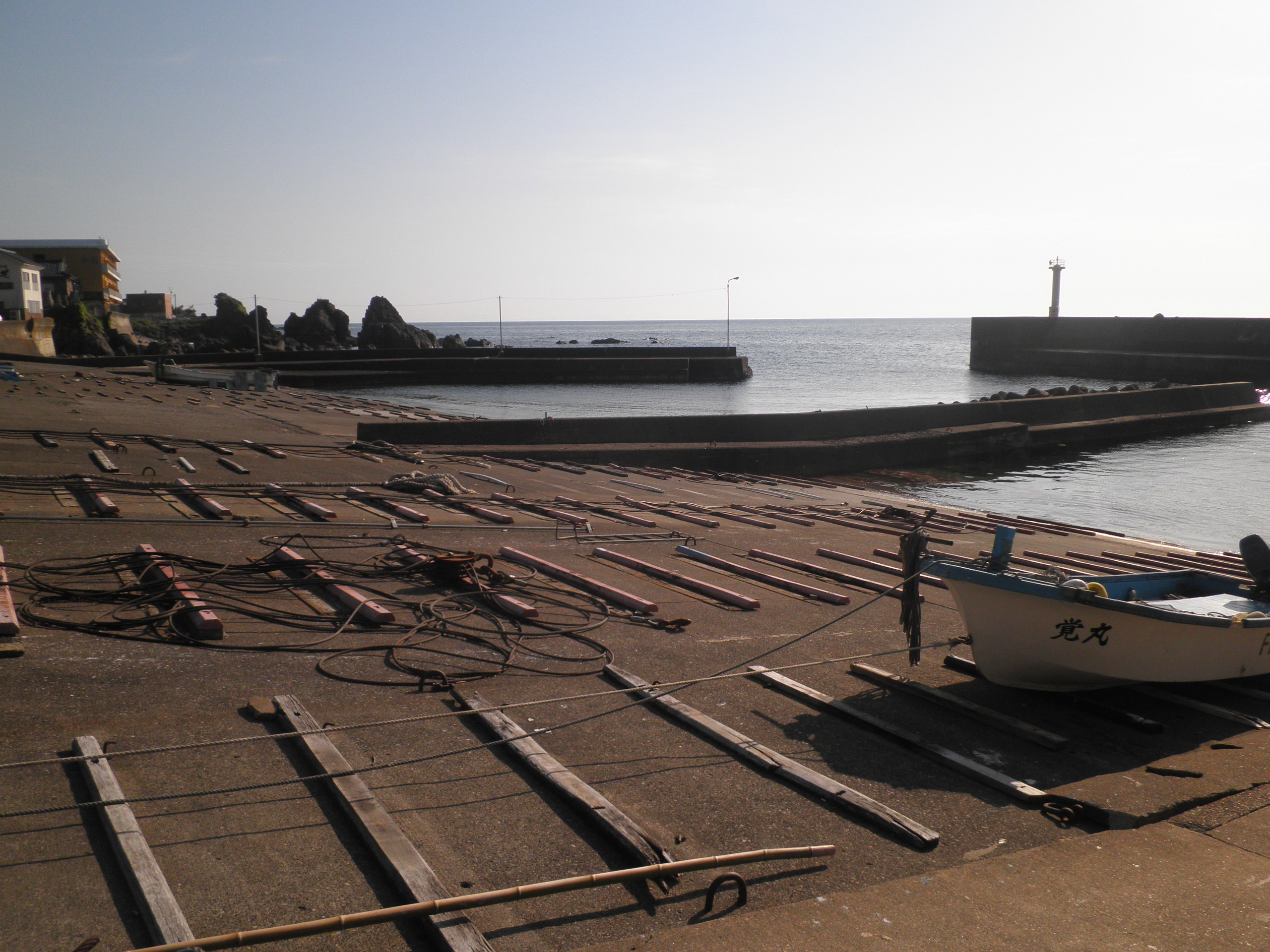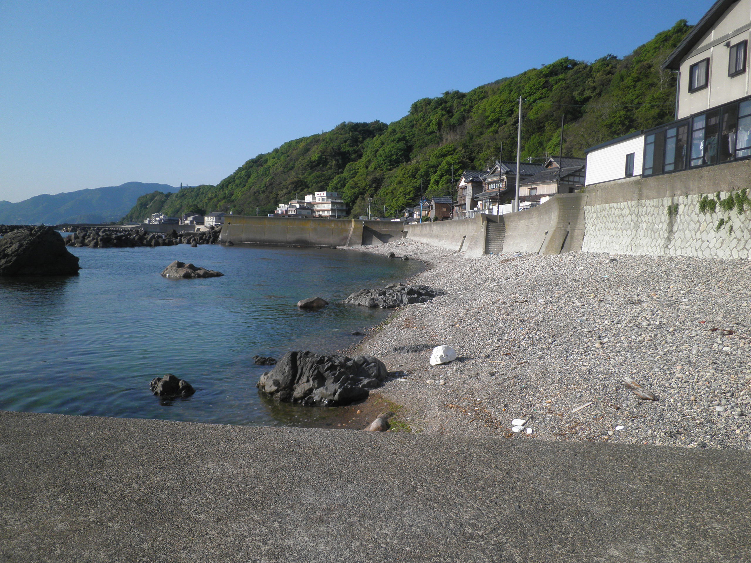85 白浜 (福井県越前町高佐 付近 ) 越前海岸は岩場の多い所です。それでもお年寄りにお聞きすると、漁港となる前は浜があったとのことです。