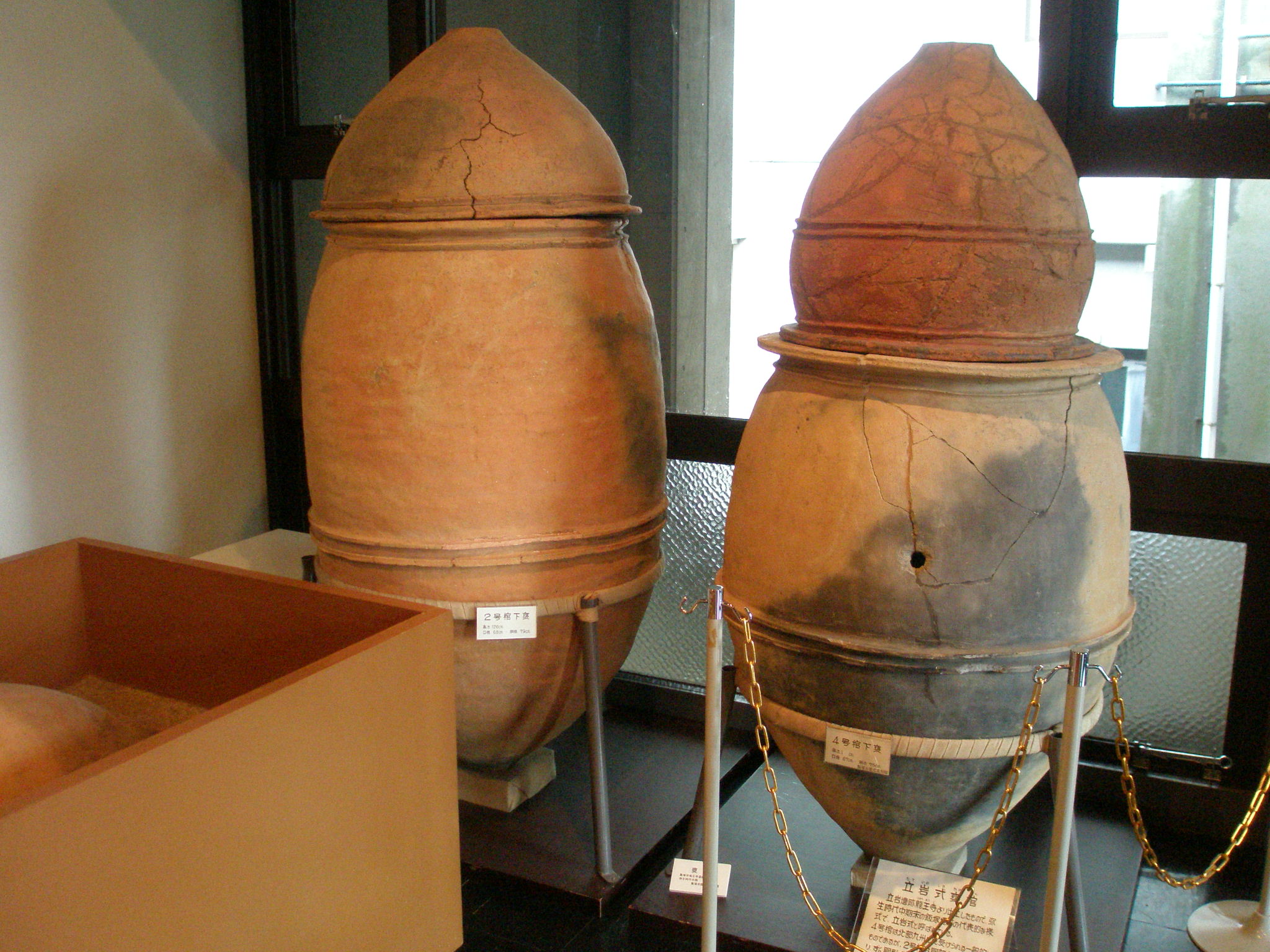 4 高尾山(福岡県遠賀郡水巻町吉田南5 ) 天草などの人が朝倉で倭国連合し、その本隊が下関方向に進み、直方の鷹尾山から遠賀川伝いに進んだことを遺す意思表示の山と考えます。下段は近くの飯塚市の立岩遺跡で見つかった甕棺。
