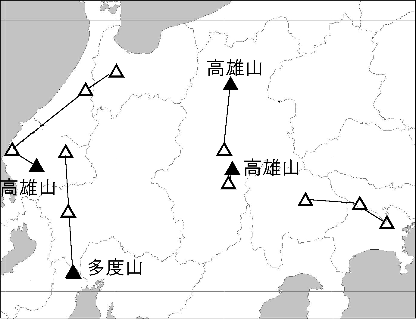 40 高尾山(神奈川県横浜市緑区長津田町付近) 山の向こうは東京工業大学です。下段は吉備武彦の越国経路に現れる「たかお山」です