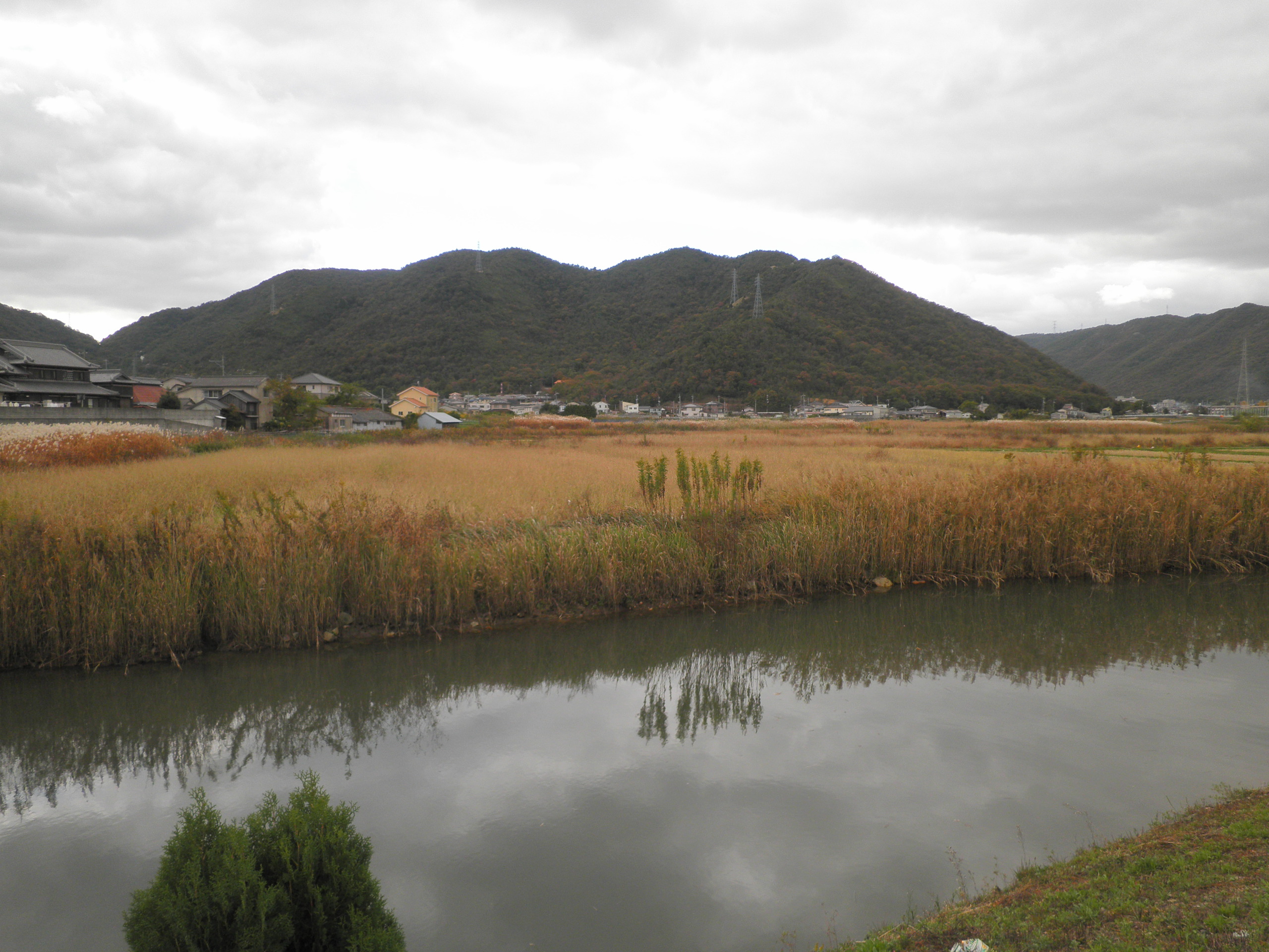 18 龍王山 (岡山県備前市伊部 付近 ) 備前市の片上湾の奥に沿った小さな平野から見えます。山頂は中央より左と思われます。撮影場所の近くに八大龍王の祠がありました。