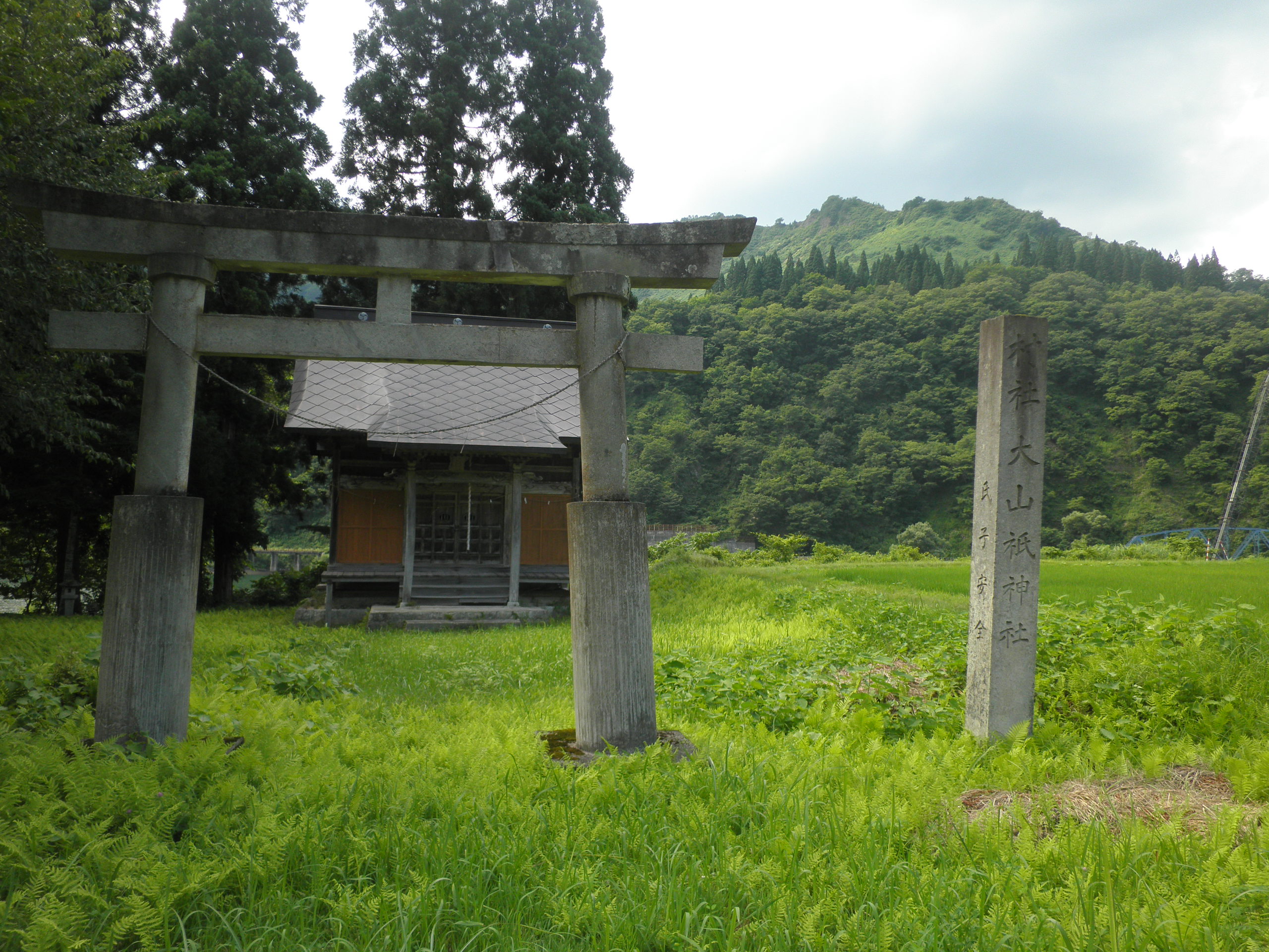27 戸屋山 (福島県只見町蒲生 付近 ) 左の蒲生岳と並んで見えます。しかし、下段画像のように、麓の大山祇神社付近の横から見ると、蒲生岳と違い、横長です。