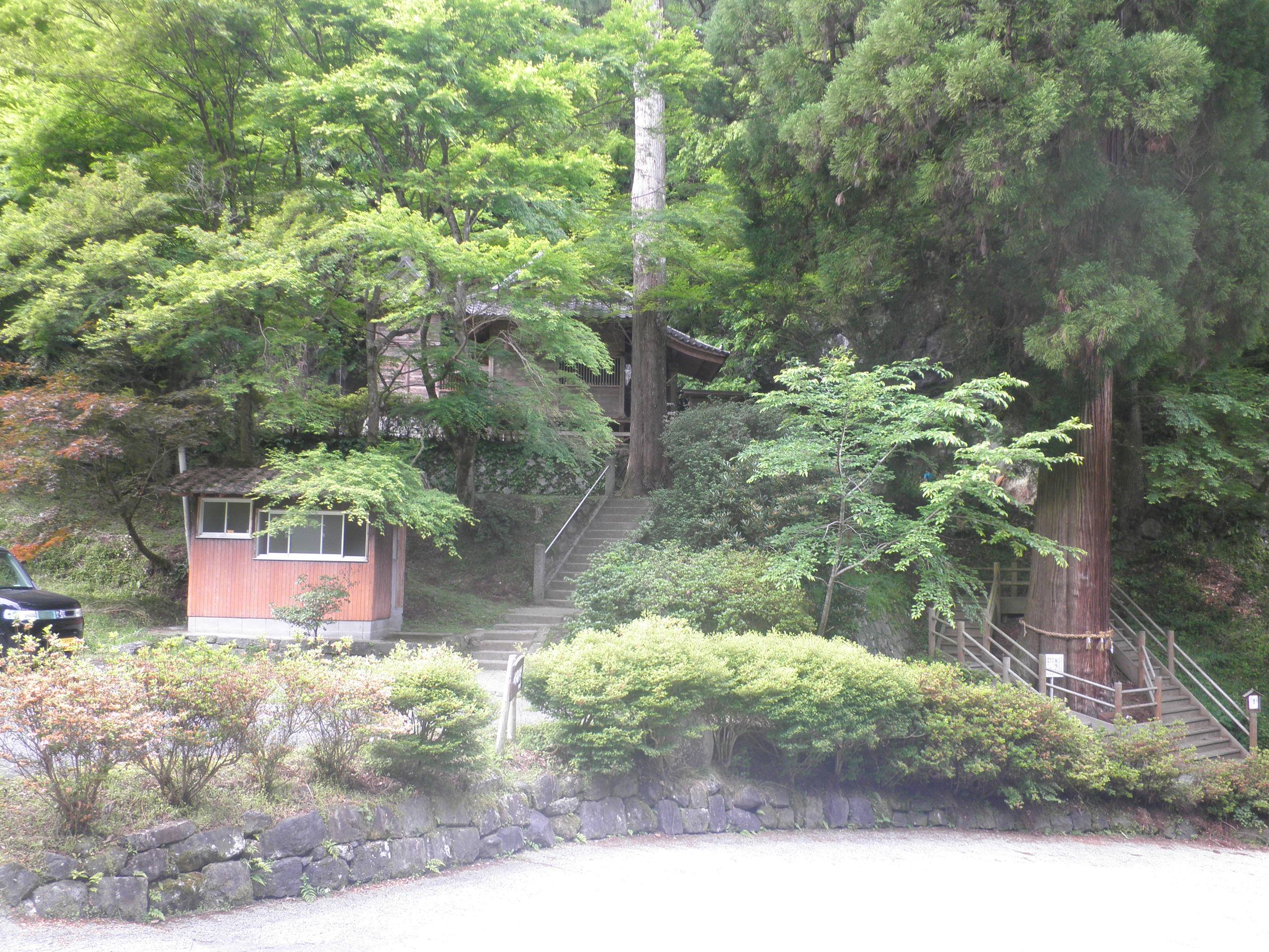 38 大山 (福岡県八女市星野村 付近) 山頂部が見える場所が少なく、電柱が指し示す山が大山と思われます。途中、八女津媛神社があったので立ち寄りました。古代、稲作が適した場所で、人が多く住んでいたのかも知れません。