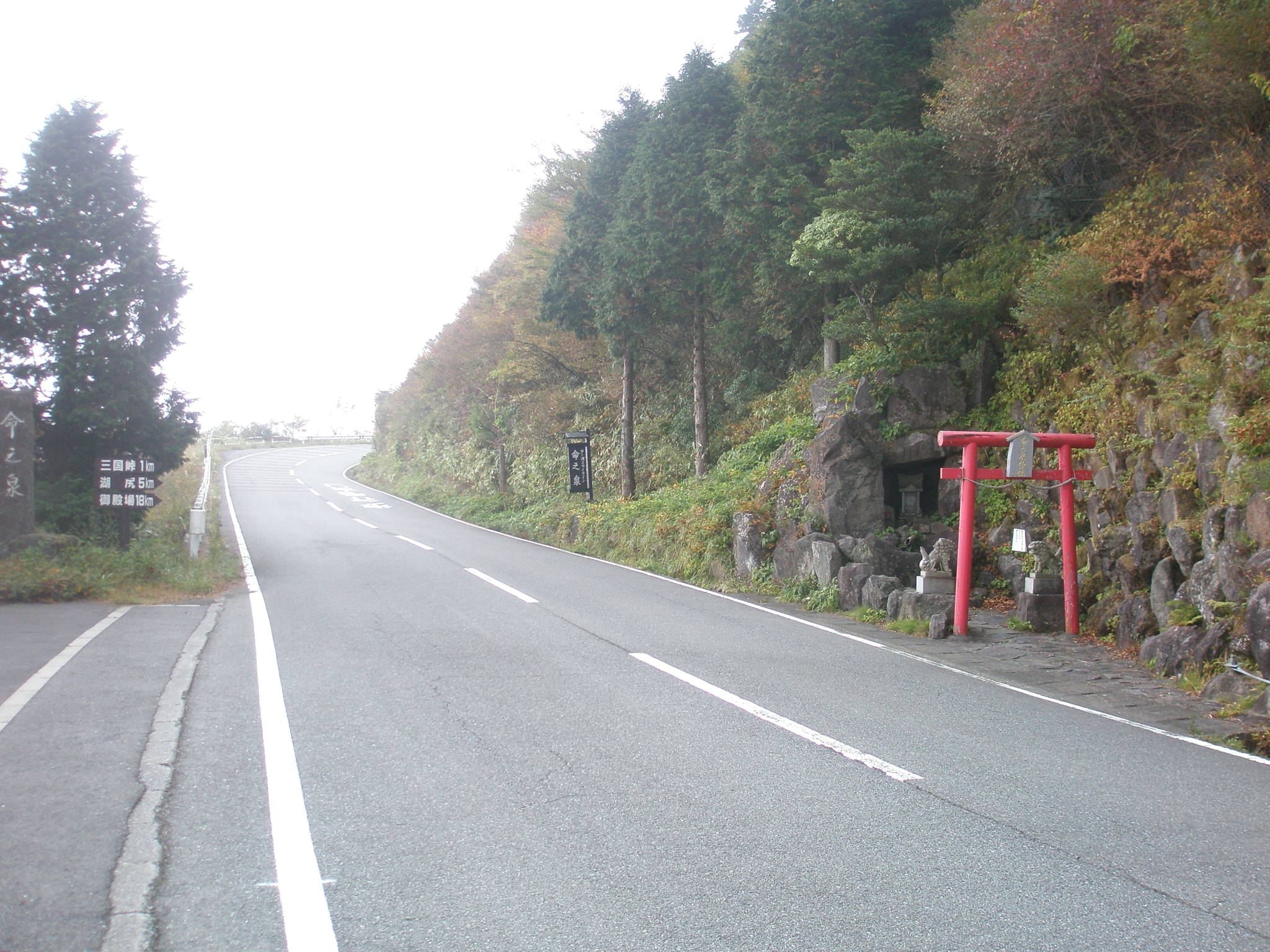 129 長尾山 仙石原浄水センター付近から撮影。乙女道路が左鞍部を通過する。近くの芦ノ湖スカイラインに「命(みこと)の泉」がある。