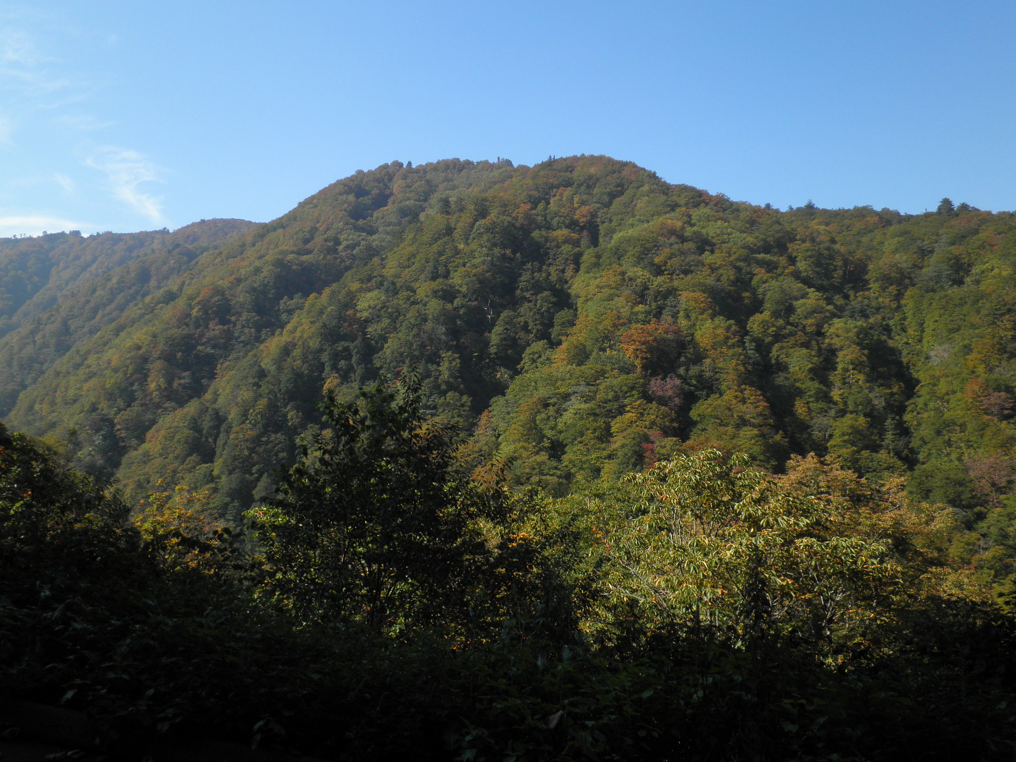 148 熊尾山 有峰林道の深い断崖の向こう側に見える。深い谷が見える(下段)