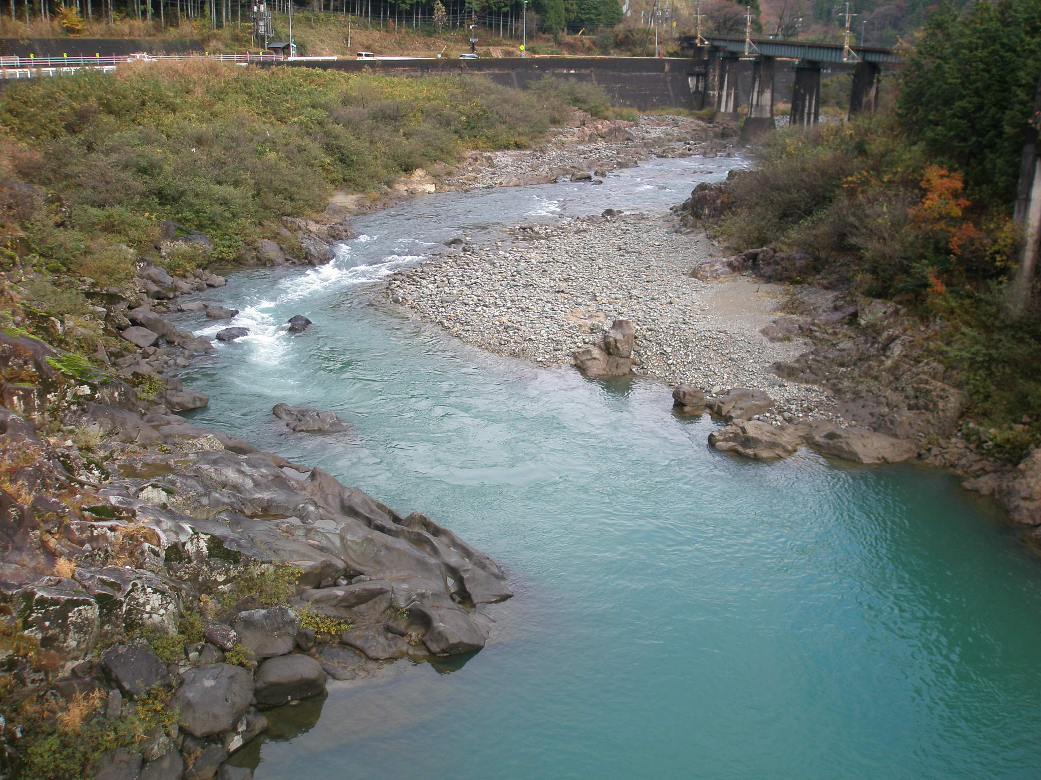 153 八尾山 中山七里に指しかっかった後方にある。下段は飛騨川の流れです。