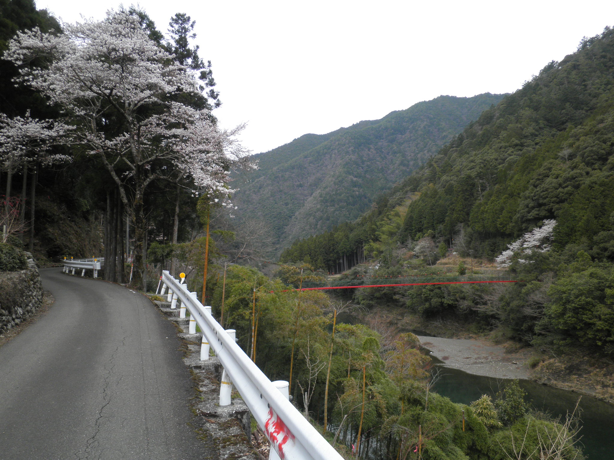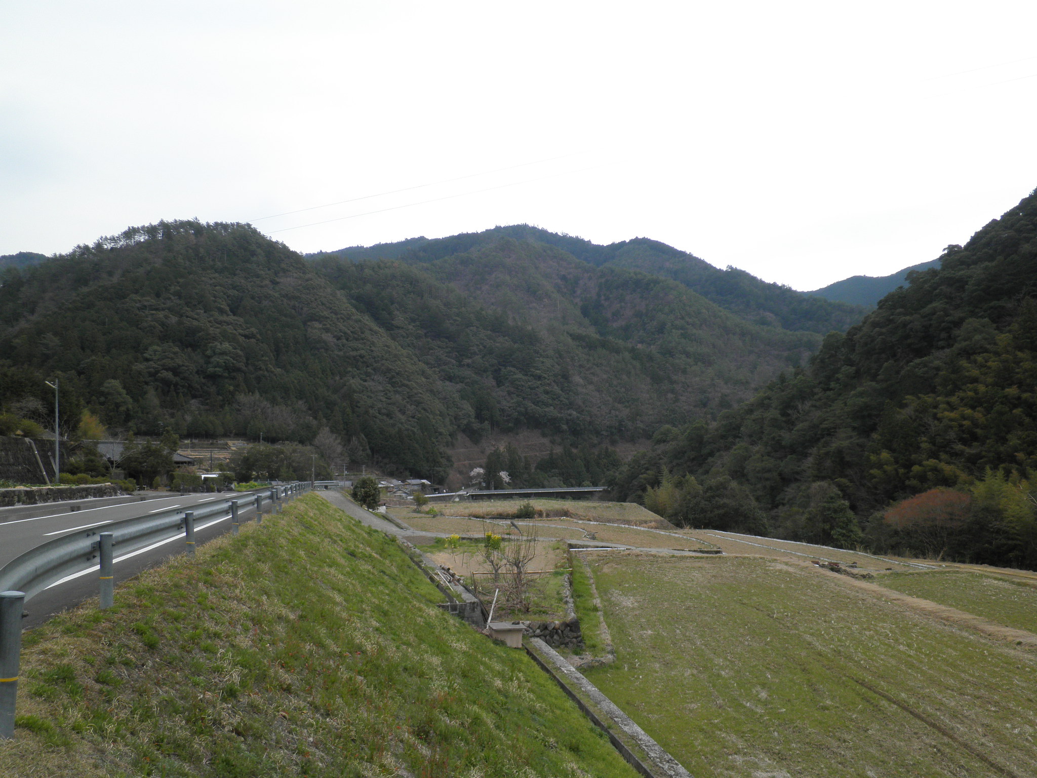 50 小松尾山 高知県高岡郡檮原町松原 付近。中央やや右の山です。この付近の山間部は国道なれど道が狭くて通行困難でした。下段は付近の国道風景です。