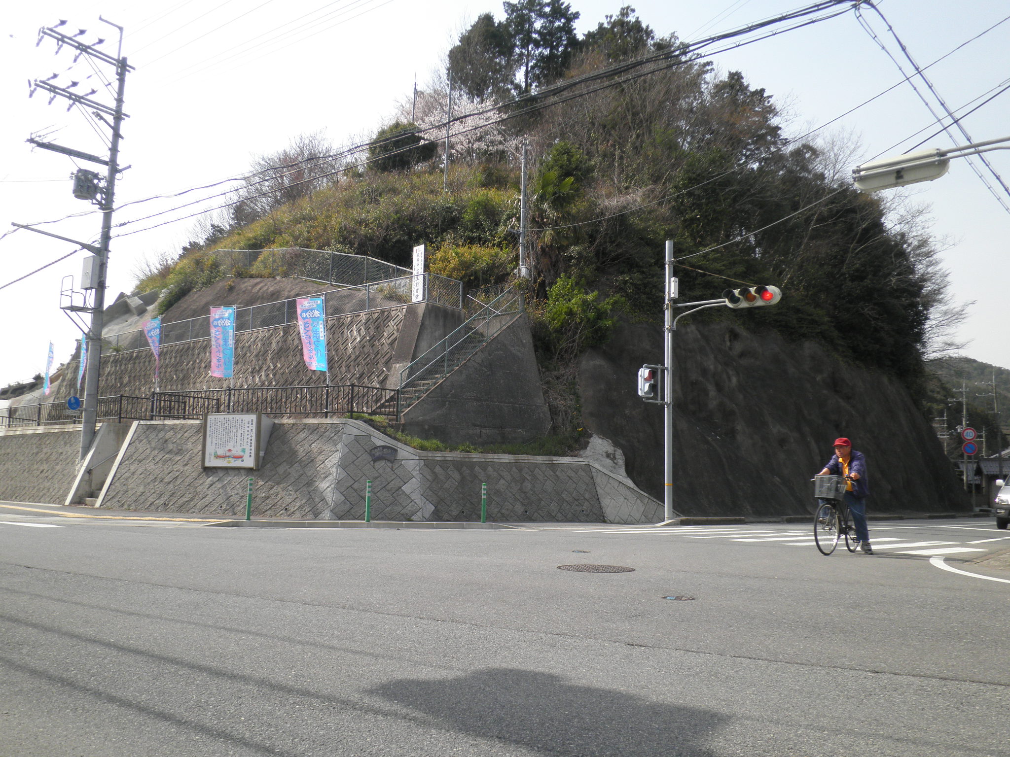 79 吼子尾山 兵庫県丹波市青垣町口塩久 付近。桜並木がきれいなところでした。下段は近くの日本の最下点の中央分水界。マンホールから向こうの雨水は山の右を向こうに流れて、日本海に注ぐ。
