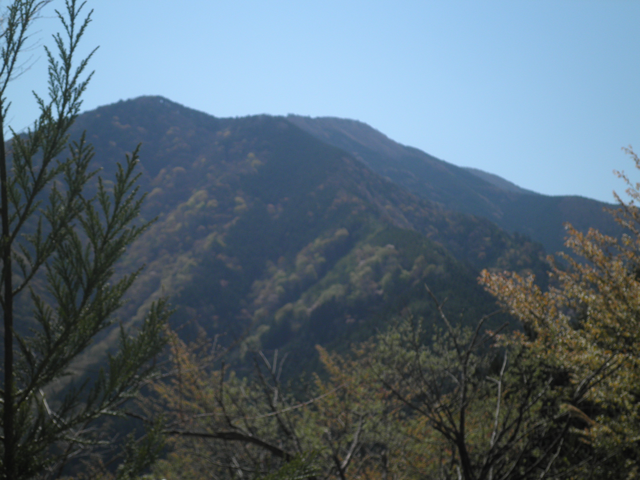 23 高塚山 静岡県浜松市天竜区春野町川上 付近。向こう側の山と思われます。林道の落石でパンクを心配しながら探し回りました。
