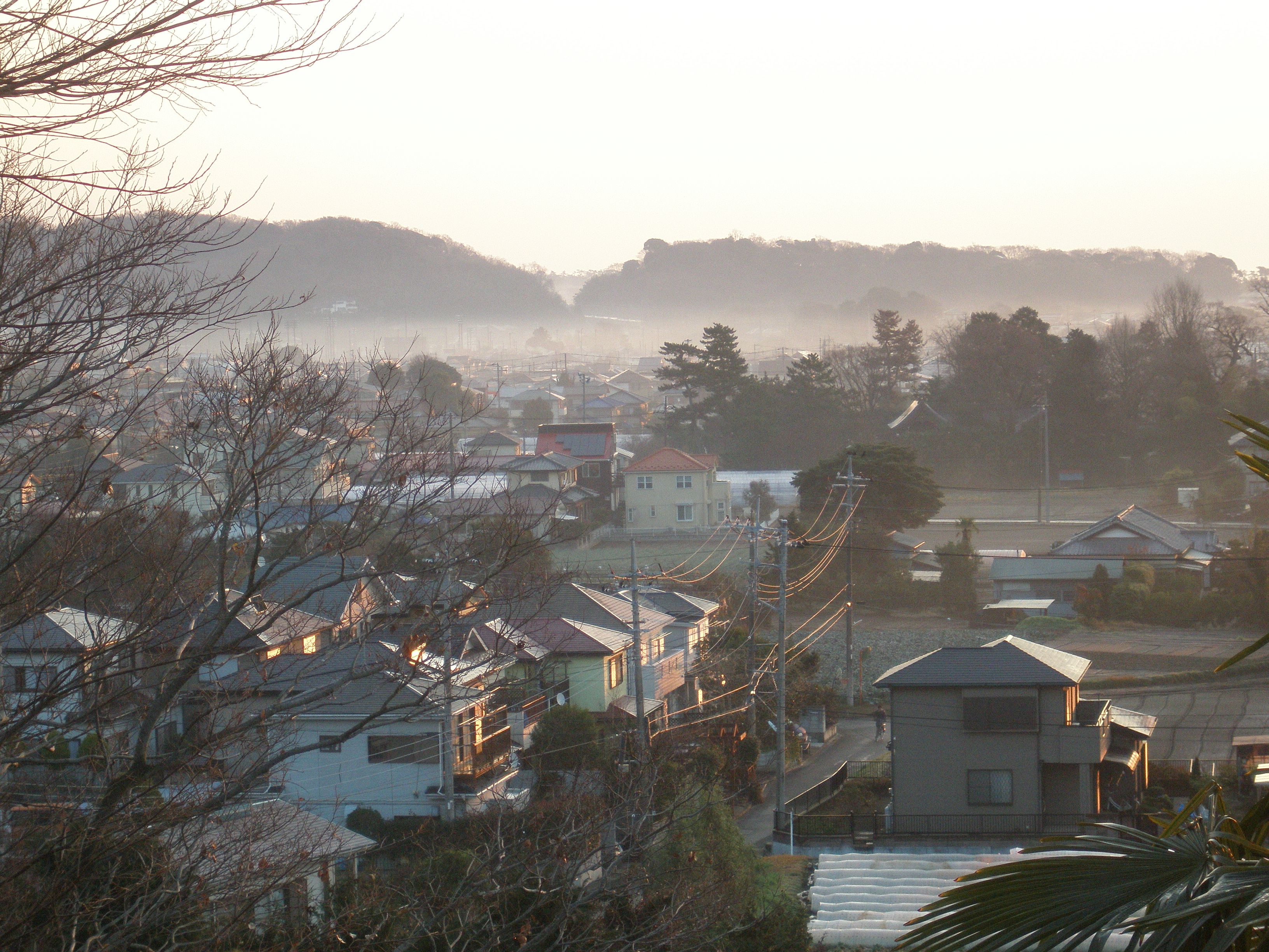 4 神奈川県大磯町国府の風景。六所神社の杜と本殿が見える